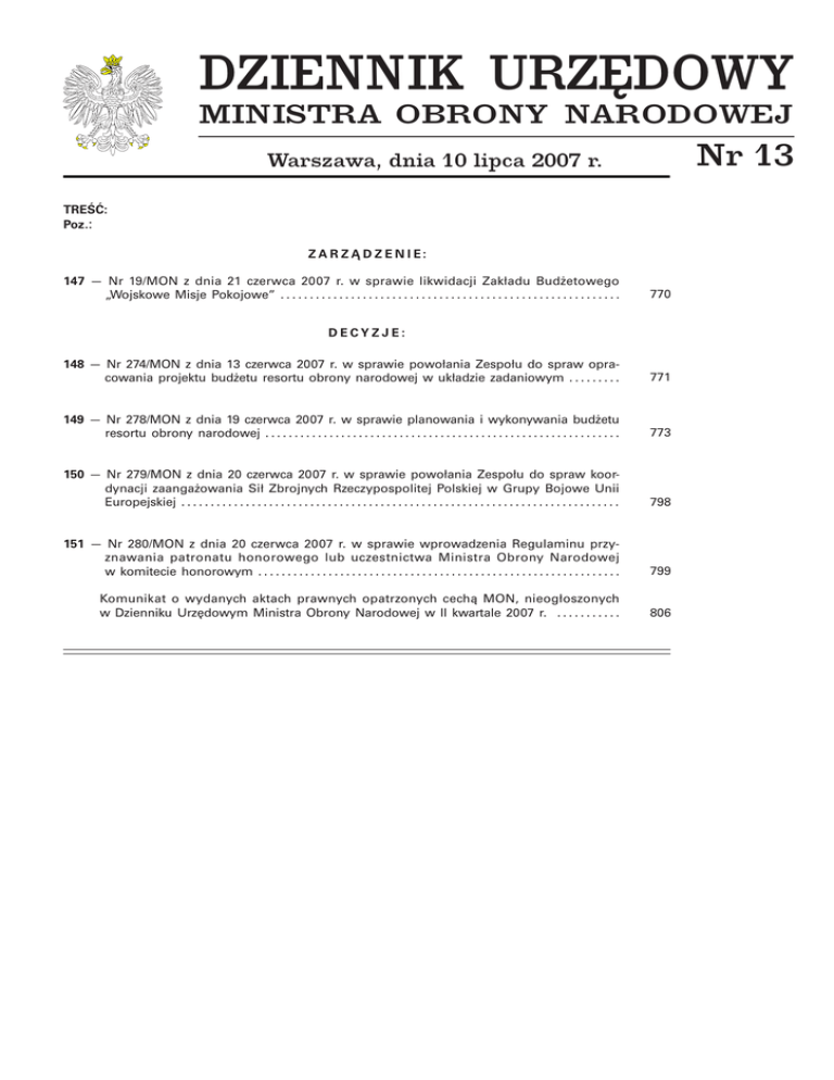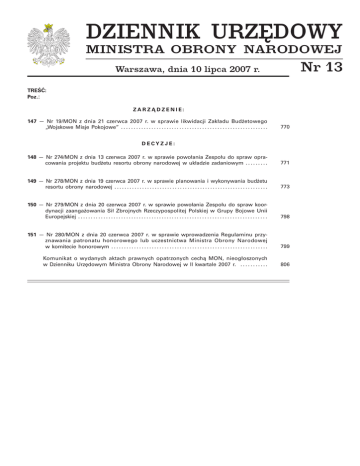 Dz.Urz. MON nr 13 z dn. 10.07.2007 r.