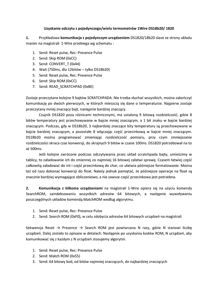 1. Bardzo przystępny opis 1-Wire ze strony układu master i jego realizacja sprzętowa na