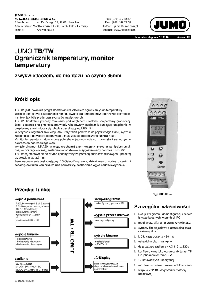 JUMO TB/TW Ogranicznik temperatury, monitor temperatury