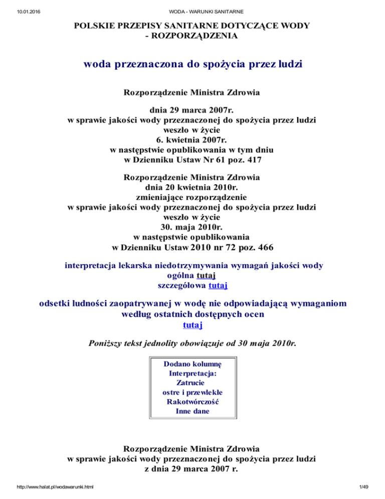 POLSKIE PRZEPISY SANITARNE DOTYCZĄCE WODY