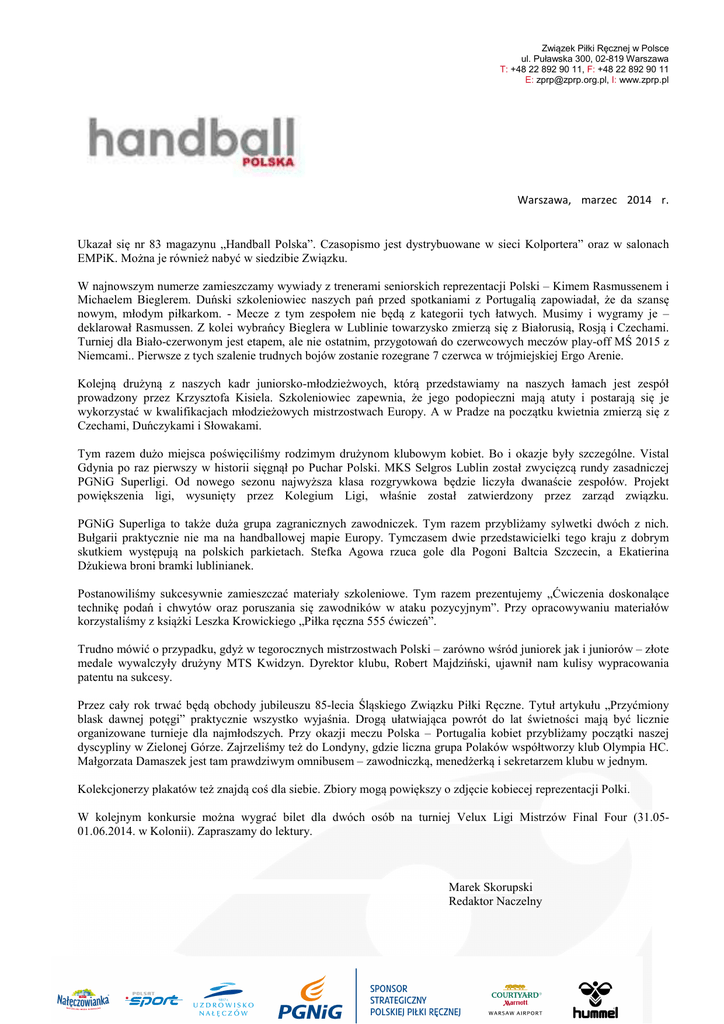Warszawa, marzec 2014 r. Ukazał się nr 83 magazynu „Handball