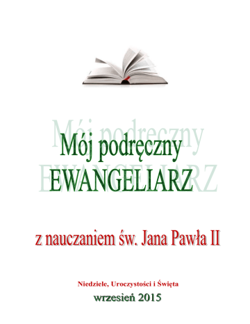 Niedziele, Uroczystości i Święta wrzesień 2015 6 września - Dwudziesta Trzecia Niedziela Zwykła Pierwsze czytanie: Psalm responsoryjny: Drugie czytanie: Iz 35,4-7a Ps 146(145) Jk 2,1-5 Nie bójcie się przygarnąć Chrystusa i przyjąć Jego władzę, pomóżcie Papieżowi i wszystkim tym, którzy pragną służyć Chrystusowi, służyć człowiekowi i całej ludzkości. Nie bójcie się, otwórzcie, otwórzcie na oścież drzwi Chrystusowi. Dla Jego zbawczej władzy otwórzcie granice państw, systemów ekonomicznych i politycznych, szerokie dziedziny kultury, cywilizacji, rozwoju! Nie bójcie się! Chrystus wie, co nosi w swoim wnętrzu człowiek. On jeden to wie! (22 października 1978) Ewangelia Jezus opuścił okolice Tyru i przez Sydon przyszedł nad Jezioro Galilejskie, przemierzając posiadłości Dekapolu. Przyprowadzili Mu głuchoniemego i prosili Go, żeby położył na niego rękę. On wziął go na bok, osobno od tłumu, włożył palce w jego uszy i śliną dotknął mu języka; a spojrzawszy w niebo, westchnął i rzekł do niego: «Effatha», Mt 7,31-37 to znaczy: Otwórz się! Zaraz otworzyły się jego uszy, więzy języka się rozwiązały i mógł prawidłowo mówić. Jezus przykazał im, żeby nikomu nie mówili. Lecz im bardziej przykazywał, tym gorliwiej to rozgłaszali. I pełni zdumienia mówili: «Dobrze uczynił wszystko. Nawet głuchym słuch przywraca i niemym mowę». Przedstawiono Mu głuchoniemego, prosząc Go, żeby położył na niego rękę. Jezus natomiast wykonuje przy nim różne gesty: bierze go na bok, wkłada palce w uszy, dotyka mu języka. Po co to wszystko? Ponieważ warunkiem, jakiego Jezus zawsze wymaga od cierpiących i od chorych, jest wiara, o którą ich pyta lub do niej zachęca, stosownie do przypadku. Otóż w przypadku głuchoniemego, dotknięcie Jego nieczynnych zmysłów odpowiada właśnie temu celowi: nawiązania łączności z tym, który nie może słyszeć ani mówić, i wzbudzeniu w nim odruchu wiary. (9 września 1979) CHRYSTUS LEKARZ Głęboko przekonani o cudownej mocy Chrystusa, powinniśmy iść do Niego, aby uleczył nas z naszych słabości i z naszych grzechów: otrzymamy od Niego, w stopniu i według miary naszej wiary, nadzieję, moc i zbawienie. ( 9 września 1979) 8 września – Święto Narodzenia N M P Pierwsze czytanie: Psalm responsoryjny: Drugie czytanie: Mi 5,1-4a Ps 96(95) Rz 8,28-30 To święto maryjne jest głęboko zakorzenione w pobożności i sercach wiernych, którzy patrzą na Najświętszą Maryję Pannę z gorącą ufnością i głęboką nadzieją, świadomi, że w zamysłach Bożych narodzenie Najświętszej Maryi Panny dało konkretny początek tym zbawczym wydarzeniom, w których Maryja miała być ściśle związana z Synem. (9 września 1981) Ewangelia dłuższa Ewangelia krótsza Z narodzeniem Jezusa Chrystusa było tak. Po zaślubinach Matki Jego, Maryi, z Józefem, wpierw nim zamieszkali razem, znalazła się brzemienną za sprawą Ducha Świętego. Mąż Jej, Józef, który był człowiekiem sprawiedliwym i nie chciał narazić Jej na zniesławienie, zamierzał oddalić Ją potajemnie. Gdy powziął tę myśl, oto anioł Pański ukazał mu się we śnie i rzekł: «Józefie, synu Dawida, nie bój się wziąć do siebie Maryi, twej Małżonki; albowiem z Ducha Świętego jest to, co się w Niej poczęło. Porodzi Mt 1,1-25 Mt 1,18-25 Syna, któremu nadasz imię Jezus, On bowiem zbawi swój lud od jego grzechów». A stało się to wszystko, aby się wypełniło słowo Pańskie powiedziane przez Proroka: Oto Dziewica pocznie i porodzi Syna, któremu nadadzą imię Emmanuel, to znaczy: "Bóg z nami". Zbudziwszy się ze snu, Józef uczynił tak, jak mu polecił anioł Pański: wziął swoją Małżonkę do siebie, lecz nie zbliżał się do Niej, aż porodziła Syna, któremu nadał imię Jezus. Wyjątkowość Maryi wynika także z rodowodów, o których mówią Mateusz i Łukasz. Ewangelia według Mateusza rozpoczyna się – zgodnie ze zwyczajem żydowskim od rodowodu Jezusa i wychodząc od Abrahama podaje kolejne pokolenia w linii męskiej. Mateusz w istocie stara się uwydatnić, poprzez ojcostwo Józefa, w świetle prawa, pochodzenie Jezusa od Abrahama i Dawida, a co za tym idzie – udowodnić, iż przysługuje Mu tytuł Mesjasza. Jednakże wyliczenie przodków kończy się następująco. „Jakub był ojcem Józefa, męża Maryi, z której narodził się Jezus zwany Chrystusem”. Tak więc uwydatnione zostaje nie ojcostwo, ale samo macierzyństwo. (28 stycznia 1987) ŚWIETLANY ZNAK BOŻEGO MIŁOSIERDZIA Specjalny przywilej przyznany przez Boga „całej świętej” pozwala nam podziwiać wspaniałe rzeczy, jakich dokonała w Jej życiu łaska. Przypomina nam on również, że Maryja zawsze i w pełni należała do Pana oraz że żadna niedoskonałość nie naruszyła nigdy doskonałej harmonii pomiędzy Nią a Bogiem. Jej ziemski los znamionuje stały i głęboki wzrost wiary, nadziei i miłości. Dlatego też Maryja jest dla wiernych świetlanym znakiem Bożego Miłosierdzia i bezpiecznym przewodnikiem ku szczytom doskonałości ewangelicznej i świętości. (19 czerwca 1996) 13 września - Dwudziesta Czwarta Niedziela Zwykła Pierwsze czytanie: Psalm responsoryjny: Drugie czytanie: Iz 50,5-9a Ps 116A(114) Jk 2,14-18 Eucharystia karmi i kształtuje Kościół: „Ponieważ jeden jest chleb, przeto my, liczni, tworzymy jedno Ciało. Wszyscy bowiem bierzemy z tego samego chleba”. Dzięki tej żywotnej więzi z Sakramentem Ciała i Krwi Pańskiej właśnie w Eucharystii można tę tajemnicę Kościoła najdoskonalej głosić, doświadczać i przeżywać. (Dies Domini, 32) Ewangelia Jezus udał się ze swoimi uczniami do wiosek pod Cezareą Filipową. W drodze pytał uczniów: «Za kogo uważają Mnie ludzie?» Oni Mu odpowiedzieli: «Za Jana Chrzciciela, inni za Eliasza, jeszcze inni za jednego z proroków». On ich zapytał: «A wy za kogo Mnie uważacie?» Odpowiedział Mu P