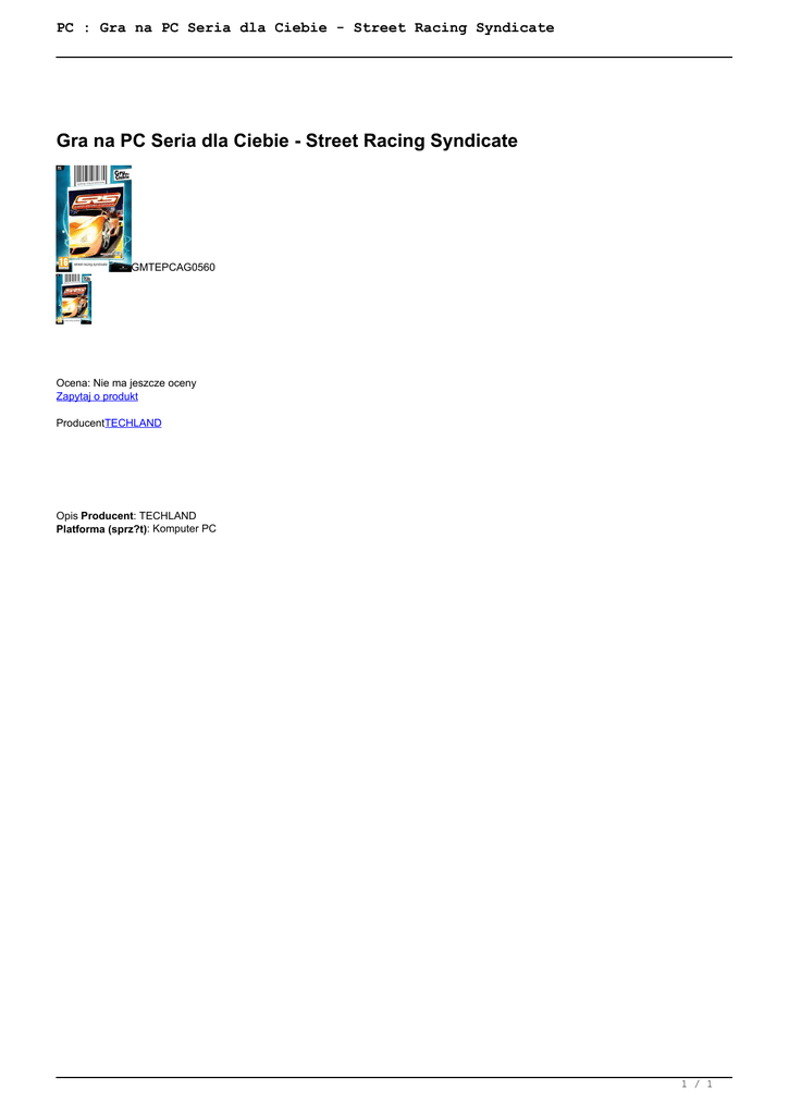 PC : Gra na PC Seria dla Ciebie - Street Racing Syndicate Gra na PC Seria dla Ciebie - Street Racing Syndicate GMTEPCAG0560 Ocena: Nie ma jeszcze oceny Zapytaj o produkt ProducentTECHLAND Opis Producent: TECHLAND Platforma (sprz?t): Komputer PC 1 / 1 Powered by TCPDF (www.tcpdf.org)