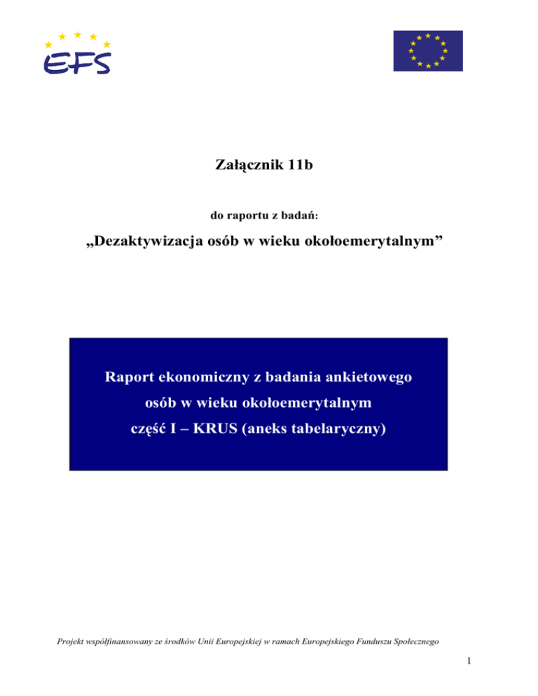 Załącznik 11b do raportu z badań: „Dezaktywizacja osób w wieku okołoemerytalnym” Raport ekonomiczny z badania ankietowego osób w wieku okołoemerytalnym część I – KRUS (aneks tabelaryczny) Projekt współfinansowany ze środków Unii Europejskiej w ramach Europejskiego Funduszu Społecznego 1 Monika Siergiejuk UBEZPIECZENI W KRUS – ANEKS TABELARYCZNY Ogólna charakterystyka osób ubezpieczonych w KRUS TABELA 1. WIERSZU/. KORZYSTANIE Z UPRAWNIEŃ I MOMENT SKORZYSTANIA Z UPRAWNIEŃ W KRUS /LICZEBNOŚCI, UDZIAŁY LICZONE W KOLUMNIE I UDZIAŁY LICZONE W w momencie uzyskania praw emerytalnych odroczenie o rok odroczenie o więcej niż rok TABELA 2. UBEZPIECZENI LICZONE W KOLUMNIE/. W KRUS normalna emerytura wcześniejsza emerytura 532 95.34 41.4 10 1.79 62.5 16 2.87 6.61 153 91.07 11.91 1 0.6 6.25 14 8.33 5.79 nie korzysta z uprawnień do normalnej emerytury 4 11.43 0.31 0 0 0 31 88.57 12.81 nie korzysta z uprawnień do wcześniejszej emerytury 0 0 0 0 0 0 25 100 10.33 nieuprawnieni ogółem 596 78.73 46.38 5 0.66 31.25 156 20.61 64.46 1285 83.28 100 16 1.04 100 242 15.68 100 WEDŁUG KORZYSTANIA Z UPRAWNIEŃ I POZIOMU WYKSZTAŁCENIA /LICZEBNOŚCI, UDZIAŁY LICZONE W WIERSZU I UDZIAŁY gimnazjalne i poniżej normalna emerytura wcześniejsza emerytura nie korzysta z uprawnień do normalnej emerytury nie korzysta z uprawnień do wcześniejszej emerytury nieuprawnieni 316 56.23 48.17 79 46.75 12.04 17 48.57 2.59 8 32 1.22 236 zasadnicze zawodowe 183 32.56 30.05 60 35.5 9.85 11 31.43 1.81 13 52 2.13 342 średnie ogólne 19 3.38 26.76 7 4.14 9.86 2 5.71 2.82 0 0 0 43 średnie zawodowe i policealne 39 6.94 20.97 16 9.47 8.6 4 11.43 2.15 4 16 2.15 123 wyższe ogółem 5 0.89 19.23 7 4.14 26.92 1 2.86 3.85 0 0 0 13 562 100 36.3 169 100 10.92 35 100 2.26 25 100 1.61 757 2 31.18 35.98 45.18 56.16 5.68 60.56 16.25 66.13 1.72 50 100 48.9 TABELA 3. UBEZPIECZENI W KRUS WEDŁUG MOMENTU SKORZYSTANIA Z UPRAWNIEŃ I POZIOMU WYKSZTAŁCENIA /LICZEBNOŚCI, UDZIAŁY LICZONE W KOLUMNIE I UDZIAŁY LICZONE W WIERSZU/. gimnazjalne i poniżej zasadnicze zawodowe średnie ogólne średnie zawodowe i policealne wyższe ogółem 562 526 63 143 21 1315 84.38 84.57 90 74.48 75 83.33 42.74 40 4.79 10.87 1.6 100 9 3 0 4 0 16 1.35 0.48 0 2.08 0 1.01 56.25 18.75 0 25 0 100 95 93 7 45 7 247 14.26 14.95 10 23.44 25 15.65 38.46 37.65 2.83 18.22 2.83 100 w momencie uzyskania praw emerytalnych odroczenie o rok odroczenie o więcej niż rok TABELA 4. UBEZPIECZENI W KRUS WEDŁUG WIEKU I POZIOMU WYKSZTAŁCENIA /LICZEBNOŚCI, UDZIAŁY LICZONE W WIERSZU I UDZIAŁY LICZONE W KOLUMNIE/. gimnazjalne lub niżej zasadnicze zawodowe MĘŻCZYZNI średnie średnie zawodowe i ogólne policealne wyższe ogółem 50-54 lata 55-59 lat 60-65 lat 66-70 lat ogółem 72 25.17 27.91 85 47.49 32.95 101 58.72 39.15 258 40.50 100.00 150 52.45 54.95 69 38.55 25.27 54 31.40 19.78 273 42.86 100.00 9 3.15 50.00 6 3.35 33.33 3 1.74 16.67 18 2.83 100.00 45 15.73 60.00 17 9.50 22.67 13 7.56 17.33 75 11.77 100.00 10 3.50 76.92 2 1.12 15.38 1 0.58 7.69 13 2.04 100.00 286 100.00 44.90 179 100.00 28.10 172 100.00 27.00 637 100.00 100.00 gimnazjalne lub niżej zasadnicze zawodowe 72 22.50 17.48 121 44.65 29.37 219 60.5 53.16 151 47.19 42.9 103 38.01 29.26 98 27.07 27.84 412 43.23 100 352 36.94 100 KOBIETY średnie średnie zawodowe i ogólne policealne 30 61 9.38 19.06 56.6 50.41 9 34 3.32 12.55 16.98 28.1 14 26 3.87 7.18 26.42 21.49 53 5.56 100 121 12.7 100 wyższe ogółem 6 1.88 40 4 1.48 26.67 5 1.38 33.33 320 100 33.58 271 100 28.44 362 100 37.99 15 1.57 100 953 100 100 3 TABELA 5. PRZECIĘTNY WIEK ZAKOŃCZENIA AKTYWNOŚCI ZAWODOWEJ, NABYCIA UPRAWNIEŃ I SKORZYSTANIA Z UPRAWNIEŃ W KRUS. PRACUJĄCY Mężczyźni wiek zaprzestania pracy wiek nabycia uprawnień wiek skorzystania z uprawnień emerytura x 60.23 nie korzysta nieuprawni z eni uprawnień x x 58.95 x 60.43 x NIEPRACUJĄCY Kobiety emerytura x 56.40 x 56.84 Mężczyźni nie korzysta nieuprawni z eni uprawnień x x 55.82 x x x emerytura 59.55 60.57 Kobiety nie korzysta nieuprawni z eni uprawnień 57 53.42 57 x 60.64 x emerytura 55.62 56.44 x 56.65 nie korzysta nieuprawni z eni uprawnień 50 47.67 55.33 x x x TABELA 6. WIEK ZAKOŃCZENIA AKTYWNOŚCI ZAWODOWEJ PRZEZ NIEPRACUJĄCYCH UBEZPIECZONYCH W KRUS. MĘŻCZYZNI N średnia odchylenie standardowe wsp. zmienności skośność kurtoza p25 p50 p75 KOBIETY emerytura nie korzysta z uprawnień nieuprawnieni emerytura nie korzysta z uprawnień nieuprawnieni 173 59.55 6.39 0.11 -2.08 8.86 57 60 65 5 57.00 5.43 0.10 0.28 2.34 55 57 58 67 53.42 4.92 0.09 -1.71 7.56 51 55 56 292 55.62 4.24 0.08 -1.39 8.60 54 55 59 12 50.00 11.56 0.23 -2.28 7.53 48 54 55 91 47.67 7.18 0.15 -1.88 8.04 45 49 52 TABELA 7. UBEZPIECZENI W KRUS WEDŁUG KORZYSTANIA Z UPRAWNIEŃ I WIEKU. PRACUJĄCY Mężczyźni N średnia odchylenie standardowe wsp. zmienności skośność kurtoza emerytura 110 64.91 4.75 0.07 -0.66 2.03 nie korzysta z nieuprawni uprawnień eni 22 239 60.32 57.94 4.79 3.18 0.08 0.05 0.98 1.35 2.89 4.74 NIEPRACUJĄCY Kobiety emerytura 149 61.4 3.08 0.05 -0.57 2.64 nie korzysta z nieuprawni uprawnień eni 17 366 58.71 53.5 4.06 3.43 0.07 0.06 -0.33 1.24 2.34 4.25 Mężczyźni emerytura 177 65.16 4.2 0.06 -0.71 2.5 nie korzysta z nieuprawni uprawnień eni 5 68 62.2 58.41 2.86 2.73 0.05 0.05 1.06 0.53 2.68 2.61 Kobiety emerytura 296 60.76 3.39 0.06 -0.44 2.27 nie korzysta z nieuprawni uprawnień eni 12 96 57.83 55.46 2.66 3.81 0.05 0.07 1.71 0.45 5.49 2.68 4 p25 p50 p75 61 67 69 57 59.5 61 55 57 60 59 62 64 56 60 62 51 53 55 62 66 69 60 62 62 56 58 60 58 61 64 56 57 58.5 52.5 55 58 TABELA 8. UBEZPIECZENI W KRUS WEDŁUG KORZYSTANIA Z UPRAWNIEŃ I WIEKU /UDZIAŁY LICZONE W KOLUMNIE/. PRACUJĄCY NIEPRACUJĄCY Mężczyźni 50-54 lata 55-59 lat 60-65 lat 66-70 lat emerytura x 20.91 22.73 56.36 Kobiety nie korzysta nieuprawnien emerytura z uprawnień i x x 0.67 50.00 73.64 24.83 36.36 23.85 74.50 13.64 2.51 x Mężczyźni nie korzysta nieuprawnien emerytura z uprawnień i 