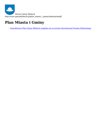 Strona Gminy Kłobuck http://www.gminaklobuck.pl/plan_miasta_i_gminy/index/printpdf Plan Miasta i Gminy Interaktywny Plan Gminy Kłobuck znajduje się na stronie internetowej Powiatu Kłobuckiego