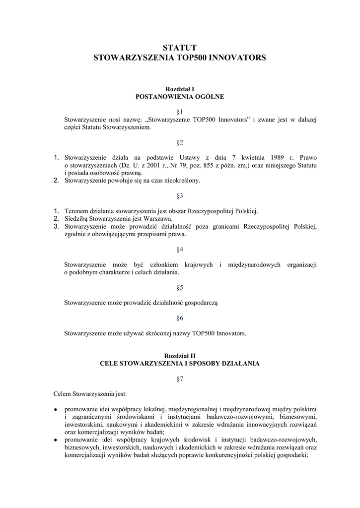 Zobacz Statut Stowarzyszenia Top 500 Innovators.