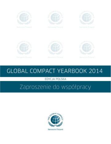 global compact yearbook 2014 EDYCJA POLSKA Zaproszenie do współpracy Szanowni Państwo, Z wielką radością pragnę zaprosić do współtworzenia głównego dokumentu programowego UN Global Compact (UNGC) w Polsce. Poprzez to działanie promujemy najwyższe standardy ONZ w praktyce biznesowej. Wierzę, że poprzez wspólny głos UNGC i firm, które odpowiedzialne działanie mają zawarte w strategiach i praktyce biznesowej uda nam się przyczynić do wzrostu konkurencyjności, innowacyjności i stabilności działania firm w Polsce, budując jednocześnie najlepszy ich wizerunek. Publikacja powstaje jedynie ze środków otrzymanych od partnerów. Jak wiemy Polska od maja 2004 roku, czyli od dnia wejścia do struktur Wspólnoty Europejskiej ma status kraju wysoko rozwiniętego i status donora dla ONZ. Środki pomocowe angażujemy jedynie na wsparcie dla krajów słabiej rozwiniętych, głównie poza Europą. Aby utrzymać pełną dobrowolność uczestnictwa w UN Global Compact w Polsce, członkowie zdecydowali o braku składki członkowskiej, a wszystkie działania w Polsce prowadzone są w oparciu o koalicję partnerów, którzy współorganizują z nami poszczególne inicjatywy i programy. Serdecznie zachęcam do dołączenia do grona partnerów finansujących polską edycję Global Compact Yearbook 2014 Z poważaniem, Kamil Wyszkowski, Krajowy Przedstawiciel UN Global Compact w Polsce UN Global Compact United Nations Global Compact (UN Global Compact) jest Inicjatywą Sekretarza Generalnego ONZ i wiodącą platformą tworzącą i wdrażającą odpowiedzialne i zrównoważone polityki korporacyjne. UN Global Compact została zaprezentowana na Szczycie w Davos w 1999 roku a formalnie uruchomiona przez Sekretarza Generalnego ONZ podczas Szczytu Milenijenego ONZ (UN Millenium Summit) w 2000 roku. Sekretarz Generalny ONZ poprzez UN Global Compact, przy wsparciu Prezesów wiodących firm, powiązuje strategiczne działania biznesu z 10. podstawowymi zasadami UN Global Compact z zakresu praw człowieka, praw pracowniczych, ochrony środowiska i przeciwdziałania korupcji. Poprzez współpracę z rządem, administracją publiczną, sektorem prywatnym, organizacjami pozarządowymi i instytucjami naukowymi UN Global Compact: • wspiera realizację globalnych celów ONZ, w tym SDGs (Sustainable Development Goals), • wdraża koncepcję zrównoważonego rozwoju (sustainable development concept) i 10 zasad Global Compact, • w oparciu o koncepcję zrównoważonego rozwoju i 10 zasad Global Compact, wypracowuje standardy międzynarodowe dla biznesu Obecnie UN Global Compact jest największą, globalną Inicjatywą skupiającą biznes i wypracowującą praktykę działania biznesu na całym świecie w oparciu o standardy ONZ, skupiającą ponad 12000 firm i instytucji. Od 2009 roku UN Global Compact wydaje Yearbook, publikację dedykowaną standardom i celom ONZ oraz ich implementacji w praktyce działalności biznesowej. Yearbook pokazuje najskuteczniejsze i najbardziej innowacyjne działania firm na całym świecie. Światowa edycja Yearbooka prezentuje p raktyki firm wybranych spośród ponad 12000 członków UN Global Compact obecnych w 145 państwach świata, których działania są zgodne z normami i standardami ONZ. W Yearbooku swoje teksty zamieszczają: BILL Clinton Joschka Fischer 42. Prezydent Stanów Zjednoczonych Były Wicekanclerz i były Minister Spraw Zagranicznych Niemiec Teresa Fogelberg Achim Steiner Deputy Chief Executive, Global Reporting Initiative. Björn Stigson przewodniczący Światowej Rady Biznesu na Rzecz Zrównoważonego Rozwoju (WBCSD) Podsekretarz Generalny ONZ i Dyrektorem Wykonawczym Programu Narodów Zjednoczonych ds. Ochrony Środowiska (UNEP) Adresatem tej limitowanej publikacji są przedstawiciele rządów i administracji publicznej z całego świata, kadra zarządzająca światowych koncernów, wpływowi dziennikarze, przedstawiciele globalnych organizacji pozarządowych i charytatywnych. Yearbook to drogowskaz dla firm z całego świata, a także miejsce gdzie firmy mogą zaprezentować swoje najlepsze rozwiązania, wpisując się w standardy i cele ONZ. W ostatnich latach swoimi doświadczeniami pochwaliło się ponad 100 firm kluczowych we wszystkich obszarach globalnej gospodarki. W ostatnim roku były to między innymi: POLSKI YEARBOOK W ramach pierwszej tego typu ONZ-owskiej publikacji w Polsce wskazane zostaną współczesne wyzwania jakie stoją przed firmami działającymi w sposób zrównoważony na gruncie lokalnym, krajowym i ponadnarodowym. Prezentowane będą standardy ONZ w powiązaniu ze strategiami średnio i długookresowymi wdrażanymi przez firmy adaptujące i dostosowujące się do nowych wyzwań kształtujących biznes i jego otoczenie. Słowo wstępne do polskiego biznesu w ramach Global Compact Yearbook 2014 skierują: Ban Ki-Moon, Sekretarz Generalny ONZ, Georg Kell, Dyrektor UNGC oraz Kamil Wyszkowski, Krajowy Przedstawiciel UNGC w Polsce. Honorowy patronat nad Yearbookiem objął Pan Janusz Piechociński, Wiceprezes Rady Ministrów i Minister Gospodarki. Do współpracy przy opracowaniu Global Compact Yearbook 2014 zostali zaproszeni wybitni eksperci z Polski oraz zagranicy, m.in. prof. Muhhamad Yunus, Laureat Nagrody Nobla oraz Doradca Sekretarza Generalnego ONZ, prof. Jeffrey Sachs, Specjalny Doradca Sekretarza Generalnego ONZ, dr Henryka Bochniarz, przedstawicielka Rady Programowej UN Global Compact w Polsce oraz Prezydent Konfederacji Lewiatan oraz dr Kalman Mizsei, były zastępca Sekretarza Generalnego ONZ oraz Dyrektor Regionalny UNDP na Europę i kraje CIS. Doroczna publikacja opisuje praktyczne aspekty wdrażania standardów ONZ i wymogów UE w obszarze ochrony środowiska, odpowiedzialnych inwestycji, praw człowieka, praw pracowniczych i przeciwdziałania korupcji. Celem publikacji jest wskazanie liderów biznesu i architektów zmian, którzy osiągają tę pozycję poprzez innowacje technologiczne i społeczne, efekty