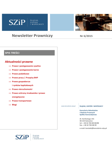 6_SZiP_Newsletter_2015 - Ślązak, Zapiór i Wspólnicy
