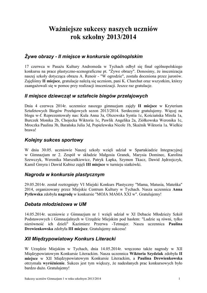 rok szkolny 2013/2014 - Gimnazjum nr 1 w Tychach