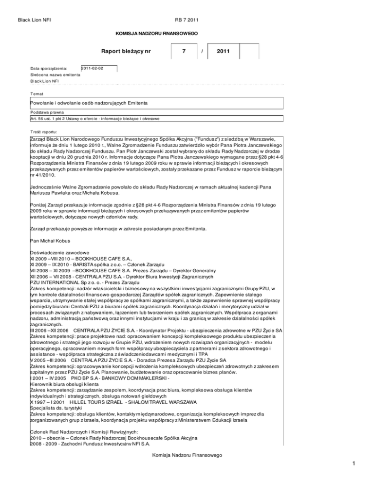 Blac k Lion Narodowy Fundusz Inwestycyjny SA