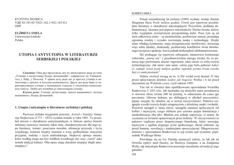 1. Utopia i antyutopia w literaturze serbskiej i polskiej
