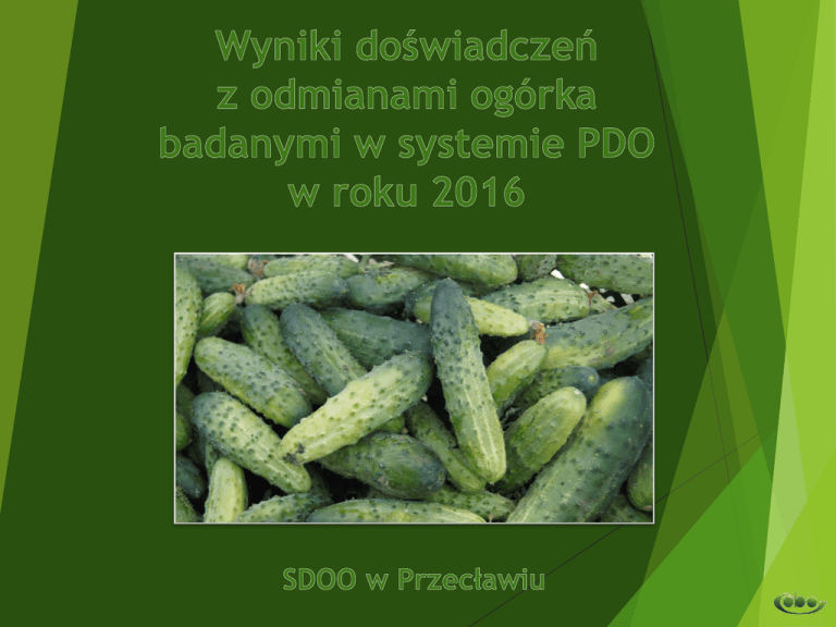 600 120 500 100 400 80 300 60 200 40 100 20 0 0 Plon ogólny* Plon handlowy* Plon owoców konserwowych* Plon wczesny plon wczesny w dt z ha plon* w dt z ha Odmiany konserwowe w uprawie przyspieszonej (okrycie włókniną od siewu do pierwszych zbiorów) - plon badanych odmian Odmiany konserwowe w uprawie przyspieszonej (okrycie włókniną od siewu do pierwszych zbiorów) - struktura plonu ogólnego 100% 90% 80% 70% 60% 50% 40% 30% 20% 10% 0% Brawo Bursztyn Lazuryt Orfeus Śremski Mirabelle Monisia udział owoców niekształtnych udział owoców za grubych udział owoców za długich (> 8cm) udział owoców konserwowych (6-8 cm) W doświadczeniu nie wystąpiły owoce chore i żółknące Odmiany konserwowe w uprawie przyspieszonej (okrycie włókniną od siewu do pierwszych zbiorów) - ważniejsze cechy użytkowe Zlecający badania / Hodowca Odmiana Porażenie przez: Stosunek kanciastą mączniaka długości plamistość rzekomego do szerokości I termin II termin I termin II termin owocu 0 skala 9 Brawo H PH-N W. Legutko 3,4 6,5 4,8 8,5 7,5 Bursztyn H SPÓJNIA Nochowo 3,8 6,3 5,0 9,0 8,0 Lazuryt H SPÓJNIA Nochowo 3,6 6,0 4,3 8,8 7,5 Orfeus H 3,4 6,5 4,5 8,8 7,8 Śremski H PH-N W. Legutko 3,5 7,0 5,0 8,8 8,0 Mirabelle H Monsanto/Seminis 3,6 7,0 5,0 8,5 7,8 Monisia H Monsanto/Seminis 3,7 6,5 4,5 8,8 8,0 PNOS Ożarów Maz. / Moravoseed Odmiany konserwowe w uprawie przyspieszonej (okrycie włókniną od siewu do pierwszych zbiorów) - ocena sensoryczna kwaszonych owoców po 1 i 3 miesiącach od zakwaszenia - wybrane cechy Zlecający badania / Hodowca Odmiana Smak owoców Konsystencja owoców Ogólna ocena sensoryczna 1 miesiąc 3 miesiące 1 miesiąc 3 miesiące 1 miesiąc 3 miesiące Brawo H PH-N W. Legutko 4,1 3,4 4,9 4,3 4,3 3,9 Lazuryt H SPÓJNIA Nochowo 4,1 3,6 4,2 4,0 4,2 3,8 Śremski H PH-N W. Legutko 4,7 4,0 4,3 4,6 4,4 4,4 Mirabelle H Monsanto/Seminis 4,8 4,6 4,4 4,6 4,5 4,4 Monisia H Monsanto/Seminis 4,1 2,8 4,7 4,1 4,2 3,6 250 50 200 40 150 30 100 20 50 10 0 0 Avatar Skaner Śremski Plon ogólny* Plon handlowy* Plon owoców konserwowych* Plon wczesny Atlantis plon wczesny w dt z ha plon* w dt z ha Odmiany konserwowe grubobrodawkowe - plon badanych odmian Odmiany konserwowe grubobrodawkowe - struktura plonu ogólnego 100% 80% 60% 40% 20% 0% Avatar Skaner udział owoców niekształtnych udział owoców za długich (> 8cm) Śremski Atlantis udział owoców za grubych udział owoców konserwowych (6-8 cm) W doświadczeniu nie wystąpiły owoce chore i żółknące Odmiany konserwowe grubobrodawkowe - ważniejsze cechy użytkowe Porażenie przez: Odmiana Zlecający badania / Hodowca Stosunek długości do szerokości owocu kanciastą plamistość I termin mączniaka rzekomego II termin I termin II termin skala 90 Avatar H SPÓJNIA Nochowo 3,5 6,3 4,5 7,0 5,0 Skaner H M. Pędziński 3,4 7,0 4,8 7,3 4,8 Śremski H PH-N W. Legutko 3,6 6,8 5,0 6,0 4,0 Atlantis H Bejo Zaden 4,0 6,8 4,5 6,8 4,3 Odmiany konserwowe grubobrodawkowe - ocena sensoryczna kwaszonych owoców po 1 i 3 miesiącach od zakwaszenia - wybrane cechy Zlecający badania / Hodowca Odmiana Smak owoców Konsystencja owoców Ogólna ocena sensoryczna 1 miesiąc 3 miesiące 1 miesiąc 3 miesiące 1 miesiąc 3 miesiące Skaner H M. Pędziński 5,0 3,6 5,0 4,1 5,0 4,0 Śremski H PH-N W. Legutko 4,4 4,1 4,8 4,1 4,5 4,4 Atlantis H Bejo Zaden 3,7 4,2 4,4 4,9 4,1 4,6