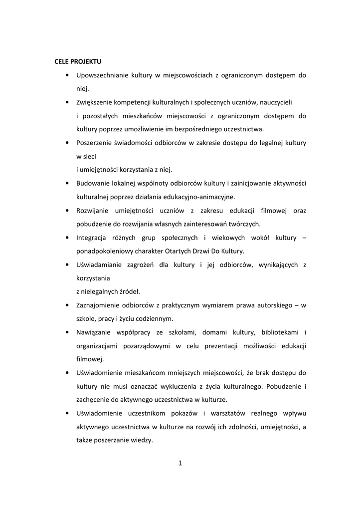 CELE PROJEKTU.docx - Otwarte Drzwi Do Kultury