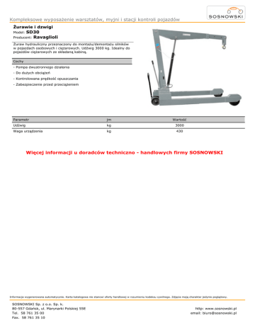 Sosnowski - Karta Katalogowa - Żurawie i dzwigi Ravaglioli Do