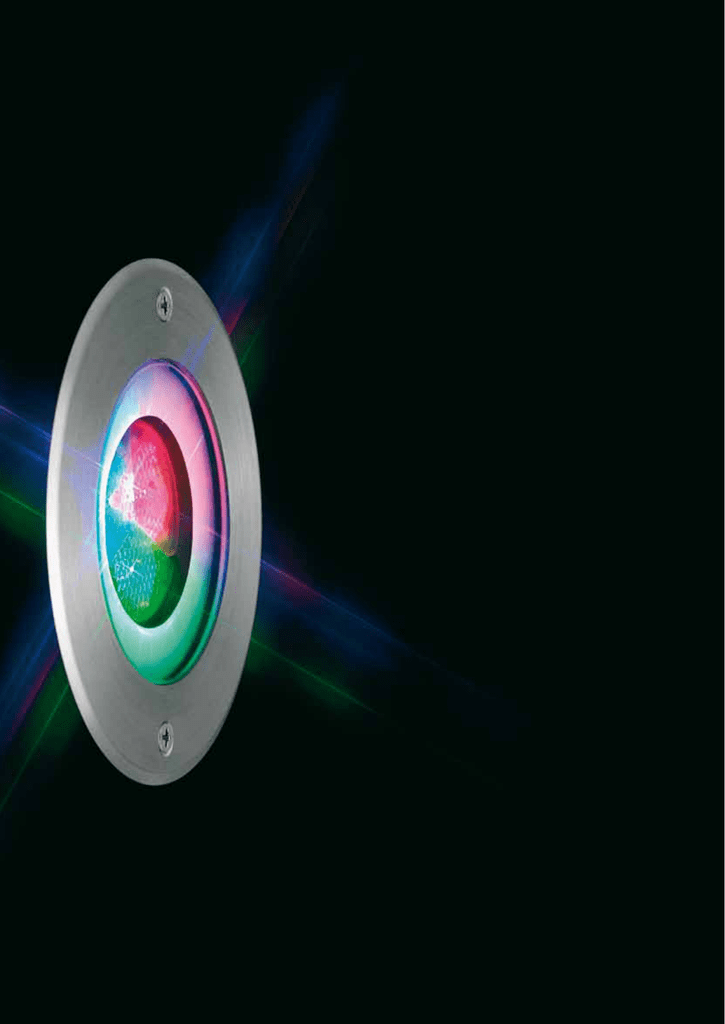 Oprawy zewnętrzne • Outdoor luminaires • Светильники наружного освещения 8 8 .067 Oprawy zewnętrzne • Outdoor luminaires • Светильники наружного освещения DIVE Dive - Rodzina opraw wodoodpornych do wbudowania w posadzki lub ściany. Dostępne są modele do lamp halogenowych, z jednokolorowymi lub kolorowymi diodami RGB. Do stosowania w fontannach, sadzawkach, oczkach wodnych i basenach. Dive - A range of submersible fixtures for recessing into floors or walls. Models for halogen lamps, with white and RGB LEDs providing dynamic coloured lighting for fountains, ponds and swimming pools. Семейство подводных светильников, встраиваемых в стену или пол. Модели для галогенных ламп накаливания, белых и RGB светодиодов для получения динамического цветного освещения фонтанов, прудов, бассейнов. 8 8 .068 Oprawy zewnętrzne • Outdoor luminaires • Светильники наружного освещения DIVE Konstrukcja/Features/Конструкция Obudowa z odlewu aluminium poddanego obróbce antykorozyjnej. Zewnętrzny pierścień z aluminium malowanego na kolor szary metaliczny lub ze stali nierdzewnej. Przezroczysta szyba. Zestaw wkrętów zabezpieczających z nierdzewnej stali. W komplecie z oprawą puszka z żywicy poliamidowej wzmacnianej włóknem szklanym. Model na lampy halogenowe i model na diody 3x1W z soczewkami. Oprawy wymagają zdalnego układu sterującego. Stopień szczelności IP68. Die-cast aluminium housing, with special rustproof painting process. Aluminium trim, painted metallic grey, or stainless steel. Clear glass. Retaining set of screws in stainless steel. Fibre-glass reinforced polyamide housing included. Model with halogen lamp and model with 3 x 1W LEDs with lenses included. Fixturies require remote control-gear. Protection rating IP68. Корпус из литого алюминия со специальной антикоррозионной обработкой и окраской. Внешнее кольцо из алюминия окрашено в серый металлический цвет или изготовлено из нержавеющей стали. Прозрачное стекло. Комплект крепежных винтов из нержавеющей стали. Светильник комплектуется корпусом из полиамидной смолы, усиленного стекловолокном. Модель использует галогенные лампы накаливания и есть модель со светодиодами 3х1Вт. с линзами. Светильник с выносным блоком питания и управления. Степень защиты IP68. 8 8 .069 Oprawy zewnętrzne • Outdoor luminaires • Светильники наружного освещения DIVE 05100 Wymiary / Dimensions / Размеры IP ØA h A h (mm) (mm) 05100/100/21 198 151 05100/100/21 90W max. QT12 GY 6,35 2,10 Oprawa bez układu zapłonowego./No gear/Светильник без системy зажигания. 182 05204 Wymiary / Dimensions / Размеры h 8 IP ØA A h (mm)(mm) 05204/.../20 128 164 05204/93/20 05204/RGB/20 123 3x1W 3x1W LED LED 3.10 3.10 W zestawie źródło LED i soczewki. Included light sources LED and lenses. В составе источники света LED и линзы 8 .070