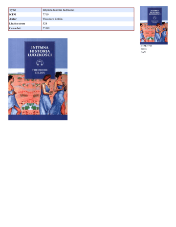 Tytuł Intymna historia ludzkości KTM 7719 Autor Theodore Zeldin Liczba stron 528 Cena det. 55.00 KTM: 7719 ISBN: EAN: