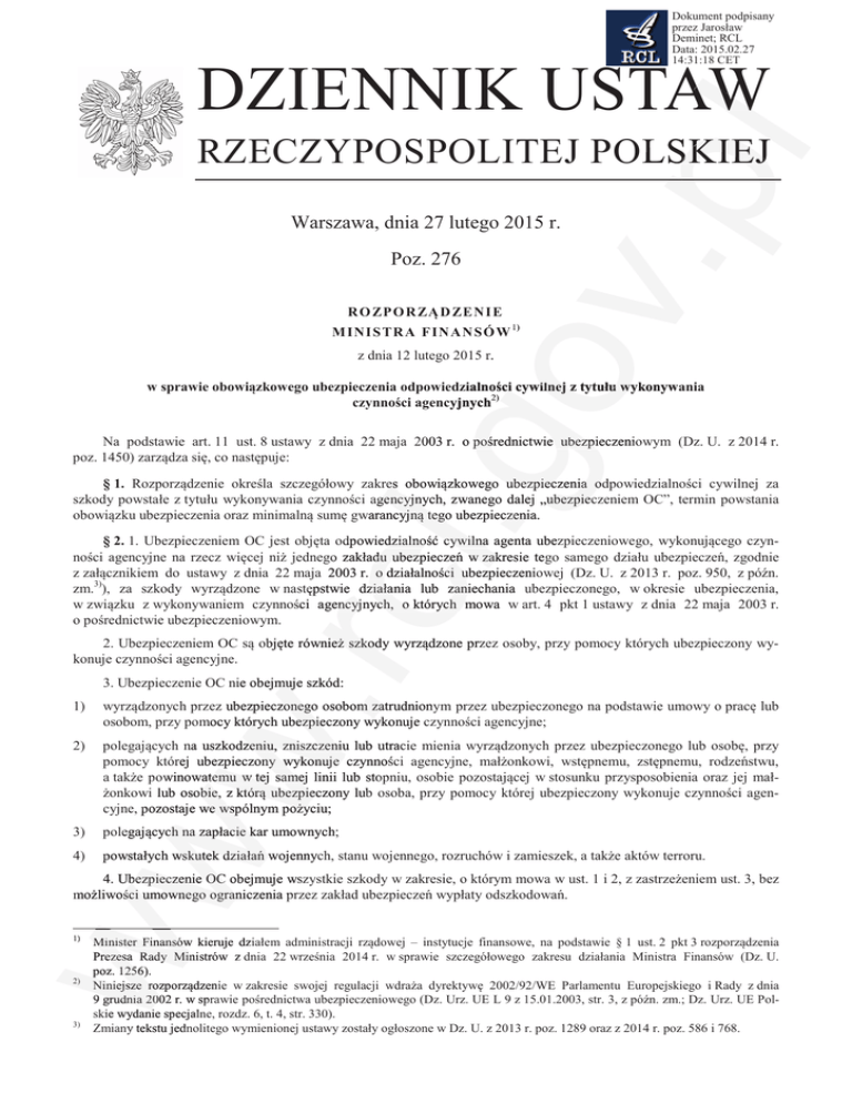 Rozporządzenie Ministra Finansów z dnia 12 lutego 2015 r. w
