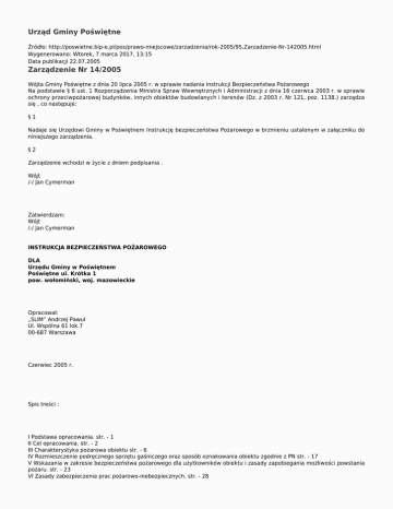 Urząd Gminy Poświętne Zarządzenie Nr 14/2005
