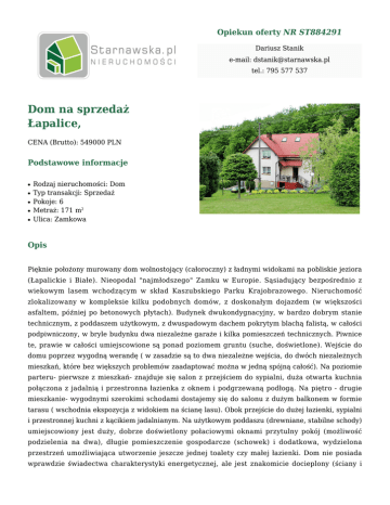 Dom na sprzedaż Łapalice, - Starnawska Nieruchomości