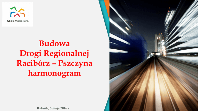 Budowa Drogi Regionalnej Racibórz – Pszczyna harmonogram Rybnik, 6 maja 2016 r Droga regionalna Racibórz – Pszczyna ETAP V – 2,7 km Węzeł Chwałowicki ETAP IV Węzeł Śródmiejski Węzeł Wodzisławski ETAP III Węzeł Świerklański Węzeł Gotartowicki Etap I 0,4 km Etap II 3,6 km Etap III 3,97 km Etap IV 2,23 km Droga śródmiejska 1,0 km ETAP II ETAP I 2011-2015 realizacja dokumentacji projektowej listopad 2011 rozpoczęcie procesu projektowania 30.08.2012 prezentacja założeń i koncepcji geodeci opis nieruchomości spotkania z mieszkańcami w urzędzie i w terenie 05.02.2015 prezentacja projektu spotkanie z mieszkańcami II i III kwartał 2015r. złożenie wniosków o wydanie zezwolenia na realizację inwestycji drogowej (ZRID) 19.04.2016 decyzja o przyznaniu dotacji powtórna ocena środowiskowa (RDOŚ) 1 rok spotkania z mieszkańcami Brak możliwości wypłaty odszkodowań cykl indywidualnych spotkań z mieszkańcami Spotkania z mieszkańcami 31.03.2016 ul. Gotartowicka i Jutrzenki 05.04.2016 ul. Boguszowicka i Jesienna 12.04.2016 ul. Dolna i Jankowicka 19.04.2016 ul. Chwałowicka i Tkoczów 26.04.2016 ul. Jagodowa 28.04.2016 ul. Wodzisławska decyzja o przyznaniu dotacji dziś czekamy na wydanie decyzji ZRID po wydaniu tej decyzji wojewoda wyda decyzje, które pozwolą wypłacić odszkodowania w przyszłym tygodniu rozstrzygnięcie przetargu na wyłonienie rzeczoznawców w ciągu miesiąca wstępna wycena nieruchomości zabudowanych czerwiec – dedykowane targi nieruchomości mieszkańcy znają szacunkową wartość swoich nieruchomości Brak możliwości wypłaty odszkodowań III/IV kwartał wypłata odszkodowań na podstawie decyzji wojewody wypłaty odszkodowań wypłaty odszkodowań Jaka jest oferta dla mieszkańców? • +5 % od kwoty wartości nieruchomości • + 10 000 zł za budynek mieszkalny • wyłonienie rzeczoznawcy przed decyzją wojewody • do 200 000 zł zaliczki • dedykowane targi nieruchomości • możliwość magazynowania • brak możliwości sprzedaży nieruchomości z wolnej ręki – w planach droga • długoletnia niepewność dotycząca realizacji drogi harmonogram prac czerwiec/lipiec 2016 ogłoszenie przetargu na budowę zamówienia publiczne przełom 2016/2017 przekazanie placu budowy prace przygotowawcze I/II kwartał 2017 rozpoczęcie budowy pierwsze opuszczenie domów koniec 2019 zakończenie budowy wcześniej oddanie do użytkowania kolejnych odcinków Dziękuję za uwagę
