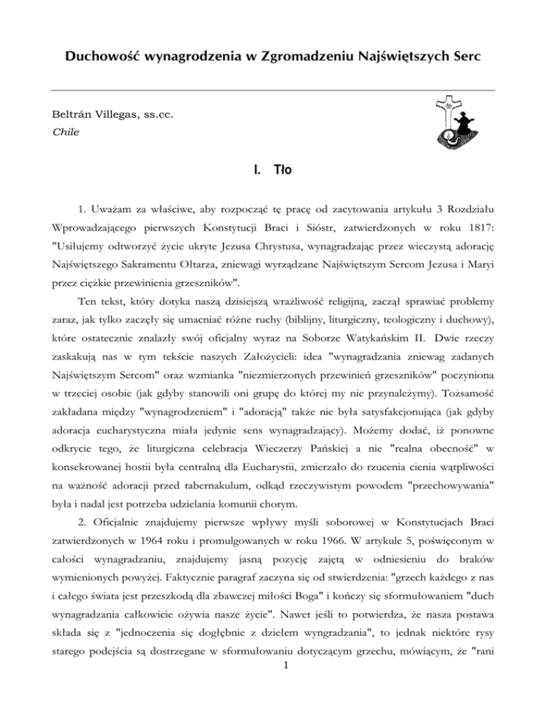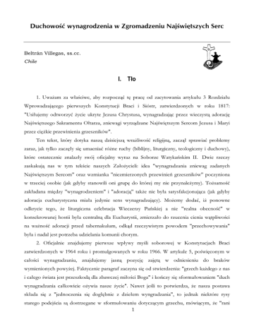 &WEJQYQ'èY[PCITQF\GPKCY<ITQOCF\GPKW0CL'YKúVU\[EJ5GTE %HOWUiQ9LOOHJDVVVFF &KLOH , 7âR 8ZDoDP ]D ZâDSFLZH DE\ UR]SRF] ý W SUDF RG ]DF\WRZDQLD DUW\NXâX 5R]G]LDâX :SURZDG]DM FHJR SLHUZV]\FK .RQVW\WXFML %UDFL L 6LyVWU ]DWZLHUG]RQ\FK Z URNX 8VLâXMHP\ RGWZRU]\ý o\FLH XNU\WH -H]XVD &KU\VWXVD Z\QDJUDG]DM F SU]H] ZLHF]\VW DGRUDFM 1DMSZLWV]HJR6DNUDPHQWX2âWDU]D]QLHZDJLZ\U] G]DQH1DMSZLWV]\P6HUFRP-H]XVDL0DU\L SU]H]FLoNLHSU]HZLQLHQLDJU]HV]QLNyZ 7HQ WHNVW NWyU\ GRW\ND QDV] G]LVLHMV] ZUDoOLZRSý UHOLJLMQ ]DF] â VSUDZLDý SUREOHP\ ]DUD]MDNW\ONR]DF]â\VL XPDFQLDýUyoQHUXFK\ELEOLMQ\OLWXUJLF]Q\WHRORJLF]Q\LGXFKRZ\ NWyUH RVWDWHF]QLH ]QDOD]â\ VZyM RILFMDOQ\ Z\UD] QD 6RERU]H :DW\ND>VNLP ,, 'ZLH U]HF]\ ]DVNDNXM QDV Z W\P WHNSFLH QDV]\FK =DâRo\FLHOL LGHD Z\QDJUDG]DQLD ]QLHZDJ ]DGDQ\FK 1DMSZLWV]\P6HUFRPRUD]Z]PLDQNDQLH]PLHU]RQ\FKSU]HZLQLH> JU]HV]QLNyZSRF]\QLRQD Z WU]HFLHM RVRELH MDN JG\E\ VWDQRZLOL RQL JUXS GR NWyUHM P\ QLH SU]\QDOHo\P\ 7RoVDPRSý ]DNâDGDQD PLG]\ Z\QDJURG]HQLHP L DGRUDFM WDNoH QLH E\âD VDW\VIDNFMRQXM FD MDN JG\E\ DGRUDFMD HXFKDU\VW\F]QD PLDâD MHG\QLH VHQV Z\QDJUDG]DM F\ 0RoHP\ GRGDý Lo SRQRZQH RGNU\FLH WHJR oH OLWXUJLF]QD FHOHEUDFMD :LHF]HU]\ 3D>VNLHM D QLH UHDOQD REHFQRSý Z NRQVHNURZDQHMKRVWLLE\âD FHQWUDOQ GOD(XFKDU\VWLL ]PLHU]DâR GR U]XFHQLD FLHQLD Z WSOLZRSFL QD ZDoQRSý DGRUDFML SU]HG WDEHUQDNXOXP RGN G U]HF]\ZLVW\P SRZRGHP SU]HFKRZ\ZDQLD E\âDLQDGDOMHVWSRWU]HEDXG]LHODQLDNRPXQLLFKRU\P 2ILFMDOQLH ]QDMGXMHP\ SLHUZV]H ZSâ\Z\ P\SOL VRERURZHM Z .RQVW\WXFMDFK %UDFL ]DWZLHUG]RQ\FKZURNX L SURPXOJRZDQ\FK Z URNX : DUW\NXOH SRSZLFRQ\P Z FDâRSFL Z\QDJUDG]DQLX ]QDMGXMHP\ MDVQ SR]\FM ]DMW Z RGQLHVLHQLX GR EUDNyZ Z\PLHQLRQ\FKSRZ\oHM)DNW\F]QLHSDUDJUDI]DF]\QDVL RGVWZLHUG]HQLDJU]HFKNDoGHJR]QDV LFDâHJRSZLDWDMHVWSU]HV]NRG GOD]EDZF]HMPLâRSFL%RJDLNR>F]\VL VIRUPXâRZDQLHPGXFK Z\QDJUDG]DQLD FDâNRZLFLH Ro\ZLD QDV]H o\FLH 1DZHW MHSOL WR SRWZLHUG]D oH QDV]D SRVWDZD VNâDGD VL ] MHGQRF]HQLD VL GRJâEQLH ] G]LHâHP Z\QJUDG]DQLD WR MHGQDN QLHNWyUH U\V\ VWDUHJR SRGHMSFLD V GRVWU]HJDQH Z VIRUPXâRZDQLX GRW\F] F\P JU]HFKX PyZL F\P oH UDQL RQ 6HUFD -H]XVD L ']LHZLF\ 0DU\L NLHG\ REX W\P VHUFRP SU]\SLVXMH RQ G]LHâR RGNXSLHQLD HRUXP RSHUL UHGHPSWLRQLV D WDNoH NLHG\ QDV] GDU PLâRSFL L Z\QDJURG]HQLD XZDoD VL MDNR EG F\NLHURZDQ\GRQLFK : DUW\NXOH NRQFHSFMH RGNXSLHQLD GRNRQDQHJR SU]H] -H]XVD L 0DU\M L Z\QDJURG]HQLD NLHURZDQHJR GR QLFK V SRZWyU]RQH DOH PRoHP\ GRVWU]HF SUDJQLHQLH SRWZLHUG]HQLD WHRORJLF]QHMZL]ML(XFKDU\VWLL5R]SRF]\QDVL RQRGDILUPDFMLoHQDV]DZ\QDJUDG]DM FDPLâRSý ]QDMGXMH VZyM Z\UD] L VZH mUyGâR SU]HGH ZV]\VWNLP Z FHOHEUDFML WDMHPQLF\ (XFKDU\VWLL 1DVWSQLH ]PLHU]D GR SRWZLHUG]HQLD oH XZDoDP\ QDV] DGRUDFM HXFKDU\VW\F]Q MDNR NRQW\QXDFM 0V]\SZRUD]oHSU]H]QL MHVWHSP\]MHGQRF]HQL]WDMHPQLF (XFKDU\VWLLJG]LH SU]H]&KU\VWXVD]1LPLZ1LPRGGDQDMHVWZV]HONDFKZDâDLF]HSý2MFXZ'XFKX $UW\NXâ\ L MDVQR VWZLHUG]DM Z MDNL VSRVyE Z\QDJUDG]DM FD PLVML =JURPDG]HQLD MHVW Z\UDoRQD Z o\FLX GXFKRZ\P MDN UyZQLHo Z G]LDâDOQRSFL DSRVWROVNLHM F]âRQNyZ QDV]HJR ,QVW\WXWX 6]F]HJyOQLH ZDoQ\ MHVW DUW\NXâ 3R XND]DQLX oH NRQLHF]Q\P ZDUXQNLHP SURZDG]HQLDo\FLDQD]QDF]RQHJRSU]H]GXFKDZ\QDJURG]HQLDMHVWNRQWHPSODFMDLQDSODGRZDQLH &KU\VWXVD ZH ZV]\VWNLFK RNUHVDFK -HJR ]LHPVNLHJR o\FLD DUW\NXâ WHQ VWZLHUG]D oH =JURPDG]HQLH MDNR ZVSyOQRWD SU]HGVWDZLD ]D SRSUHGQLFWZHP VZ\FK G]LHâ RGNXSLH>F] PLâRSý&KU\VWXVD 3UDZGRSRGREQLH QD NUyWNR SU]HG SURPXOJDFM .RQVW\WXFML Z URNX DOH MXo SR ]DNR>F]HQLX6RERUXMDNWRZLGDýSU]H]RGQRV]HQLHVL GR3HUIHFWDH&DULWDWLV]URNX2 -HDQ.HUULHQRSXEOLNRZDâVZ SUDF 1DV]D'XFKRZRSýNWyUDZUR]G]LDOH,,L,9GRNâDGQLH ]DMPXMHVL ]DJDGQLHQLHPZ\QDJURG]HQLD 6]F]HJyOQLH ZDoQ\P MHVW UR]G]LDâ ,,, NWyUHJR SLHUZV]D F]Sý ]DMPXMH VL -H]XVHP :\QDJURG]LFLHOHP MDNR IXQGDPHQWHP WHJR FR ]RVWDQLH SRZLHG]LDQH Z F]SFL GUXJLHM SRG ]QDF] F\P W\WXâHP :\QDJURG]LFLHOH ZUD] ] -H]XVHP : SLHUZV]HM F]SFL 2 .HUULHQ UR]SRF]\QDRGZVND]DQLDoHWHRORJLDRGNXSLHQLD VL ZVSDQLDOHUR]ZLQâDDOHMHGQDNQLH MHVW MHV]F]H ]XSHâQLH UR]ZLQLWD L GRGDMH oH URoQL VL RQD Z ]DOHoQRSFL RG NRQFHSFML %RJD L JU]HFKX)XQGDPHQWDOQHSU]HSZLDGF]HQLH 2 .HUULHQ ZLGRF]QH QD W\FK ZLHOX ZDUWRSFLRZ\FK VWURQQLFDFK Z\UDoD VL Z W\P oH NRU]H> RGNXSLHQLD MHVW Z PLâRSFL D QLH Z FLHUSLHQLX QDZHW MHSOL FLHUSLHQLH MHVW XSU]\ZLOHMRZDQ GURJ XND]DQLD U]HF]\ZLVWRSFL PLâRSFL : GUXJLHM F]SFL SURSRQXMHRQMDNRFRS IXQGDPHQWDOQHJRWRoHZ\QDJURG]HQLH&KU\VWXVDMHVWGRVNRQDâHRUD] QLNWQLHPRoHGRGDýF]HJRS GRRGNXSLHQLD=DPLDVWWHJRNDoG\MHVWZH]ZDQ\GRZVSyâSUDF\ Z W\P G]LHOH QD SHZQHM GURG]H D WDNoH G]LNL &KU\VWXVRZL OXG]LH V ]GROQL GR F]\QLHQLD ZNâDGXGRVZHJRRGNXSLHQLDQDVSRVyERVRELVW\EG FUyZQRF]HSQLH]EDZLHQLL]EDZLDM F\ = WHJR SRZRGX PRoHP\ SRZLHG]LHý oH RFKU]F]RQD RVRED MHVW SRZRâDQD GR E\FLD Z\QDJURG]LFLHOHP SU]HGH ZV]\VWNLP ]H Z]JOGX QD PLâRSý NWyUD PDQLIHVWXMH VL MDNR GXFK SRSZLFHQLD L NWyUD MHVW Z\UDoDQD L NDUPLRQD Z RILHU]H 0V]\ SZ 1D WHM RJyOQHM SRGVWDZLH SRGNUHSOD RQ oH QDV]H =JURPDG]HQLRZH Z\QJUDG]DQLH VNâDGD VL ] ZâDSFLZHJR VRELH ZFKRG]HQLD Z ZHZQWU]QH XNU]\oRZDQLH 6HUFD -H]XVD ]JRGQLH ] Z\SRZLHG]LDPL QDV]\FK =DâRo\FLHOL ']LHMH VL WDN SRQLHZDo X SRGVWDZ ZV]HONLHJR FLHUSLHQLD -H]XVD ]QDMGXMH VL RGU]XFHQLH SU]H] SZLDW RSLHUDM F\ VL PLâRSFL 2MFD .WyU\ Z VZRLP 6\QX SU]\FKRG]L DE\ V]XNDý OXG]L DE\ LFK ]EDZLý 1DWXUDOQLH SRGNUHSOD RQ oH QDV]H Z\QDJURG]HQLH QD SRGRELH>VWZR GR -H]XVRZHJR GRNRQXMH VL SU]H] FDâH QDV]H o\FLH EH] XSU]HG]HQLD GR VSHFMDOQLHX]QDQHJRPLHMVFDZV]\VWNLFK W\FK U]HF]\ FR Z\PDJD RG QDV SHâQ\FK SRSZLFHQLD UHQXQFMDFML ERZLHP 0V]D SZ NWyUHM SU]HGâXoHQLHP MHVW Z SHZQ\P VHQVLH QDV]D DGRUDFMD VWDQRZLQDMZ\oV]HZ\UDoHQLHQDV]HJRZ\QDJURG]HQLD : UR]G]LDOH ,9 2 .HUULHQ GRW\ND ]DJDGQLHQLD QDV]HJR Z\QDJUDG]DQLD 6HUFX -H]XVD =QDF] F\P MHVW oH UR]SRF]\QD WHQ UR]G]LDâ RG VWDQRZF]HJR SRWZLHUG]HQLD oH GXFKRZRSý 1DMSZLWV]HJR6HUFD]DXZDooHQLHPyZLRQQDERoH>VWZRGR1DMSZLWV]HJR6HUFDPDMDNR VZyM LGHDâ MHGQRSý ] &KU\VWXVHP Z V\QRZVNLHM PLâRSFL NWyUD GRSURZDG]LâD *R GR VWDQLD VL FDâNRZLW\P GDUHP SU]H] 1LHJR ] 1LP L Z 1LP QDOHoHý GR 2MFD D UyZQRF]HSQLH ZVSyâSUDFXM F Z G]LHOH RGNXSLHQLD : WHQ VSRVyE SRGNUHSOD RQ FKDUDNWHU -H]XVD M