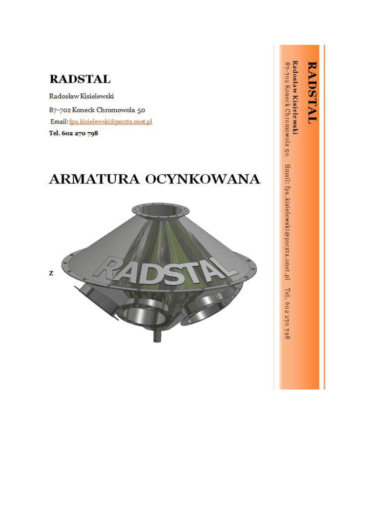 Kolana kołnierzowe rur spadowych Lp. Odmiana Nazwa elementu Wymiar Kąt β ϕD ϕd Mocowanie Masa R M Ilość M8 M8 M8 M8 M8 18 18 18 18 18 kg 1 2 3 4 5 250/2 /4 250/2 /4 250/2 /4 250/2 /4 250/2 /4 Kolano Kolano Kolano Kolano Kolano 5 15 25 35 45 250 250 250 250 250 318 318 318 318 318 6 7 8 9 10 200/2 /4 200/2 /4 200/2 /4 200/2 /4 200/2 /4 Kolano Kolano Kolano Kolano Kolano 5 15 25 35 45 200 200 200 200 200 260 260 260 260 260 720 380 300 265 250 M8 M8 M8 M8 M8 16 16 16 16 16 2 3 3 3 4 11 12 13 14 160/2 160/2 160/2 160/2 Kolano Kolano Kolano Kolano 10 20 30 40 160 160 160 160 220 220 220 220 380 250 220 210 M8 M8 M8 M8 13 13 13 13 2 2 2 3 Numer katalogowy Opis Trójniki rur spadowych z kołnierzami Trójniki symetryczne Trójniki asymetryczne Lp. Model Index Kąt [st.] Wymiar [mm] ϕD 1 2 3 Trójnik symetryczny fi 160 fi 200 fi 250 90 90 90 1 2 3 Trójnik asymetryczny fi 160 fi 200 fi 250 45 45 45 H Mocowanie Masa H1 S S1 szer. ilość *M kg 160 270 200 345 250 193 253 350 445 97 130 220 260 13 x M8 16 x M8 18 x M8 5 160 395 200 495 250 305 385 397 480 211 260 220 260 13 x M8 16 x M8 18 x M8 9 Rury kołnierzowe spadowe Lp. Odmiana Nazwa elementu Wymiar Mocowanie Masa ϕD L M Ilość 1 2 3 250/2 /3 250/2 /3 250/2 /3 Rura Rura Rura 250 250 250 1500 1000 500 M8 M8 M8 18 18 18 4 5 6 200/2 200/2 200/2 Rura Rura Rura 200 200 200 1500 1000 500 M8 M8 M8 16 16 16 7 8 9 10 11 160/1,5 160/1,5 160/1,5 160/1,5 160/1,5 Rura Rura Rura Rura Rura 160 160 160 160 160 2000 1500 1250 1000 500 M8 M8 M8 M8 M8 13 13 13 13 13 kg Numer katalogowy Opis Rury kołnierzowe teleskopowe Lp. Odmiana Nazwa elementu Wymiar ϕD L1 Mocowanie Masa L2 M Ilość 250 600 1700 250 600 1700 M8 M8 18 18 1 2 250/4 250/2 z opaską Rura t Rura t 3 200/2 Rura t 200 600 1700 M8 16 4 160 Rura t 160 ### 2000 M8 13 kg 20 Numer katalogowy Opis Redukcje kołnierzowe Lp. Odmiana Nazwa elementu Wymiar Kąt ϕD ϕd 1 2 3 Redukcja SR na SR 250 Redukcja 250 Redukcja 200 Redukcja 250 200 250 160 200 160 4 5 6 7 8 Redukcja SR na Kw 250 Redukcja 200 Redukcja 200 Redukcja 200 Redukcja 160 Redukcja Kw 200 200 180 160 180 250 200 200 200 160 Mocowanie Masa L M Ilość kg M8 18/16 M8 18/13 M8 16/13 2 M8 M8 M8 M8 M8 18 16 16 13 13 4 2 Numer katalogowy Opis R1 - R2 Rozdzielacze dwudrogowe symetryczne Lp. Odmiana Nazwa elementu Wymiar Kąt Mocowanie Masa ϕD M Ilość 1 2 3 Rozdzelacz symetryczny M 250 Rozdzelacz S 90 200 Rozdzelacz S 90 160 Rozdzelacz S 90 250 200 160 M8 M8 M8 18 16 13 4 5 6 Rozdzelacz symetryczny E 250 Rozdzelacz S 90 200 Rozdzelacz S 90 160 Rozdzelacz S 90 250 200 160 M8 M8 M8 18 16 13 Numer katalogowy Opis kg Mech. 10 7 Elekt. Rozdzielacze 2-drogowe asymetryczne z kołnierzami Lp. Model Index Kąt [st.] Wymiar [mm] ϕD H Mocowanie Masa H1 S S1 szer. ilość *M kg 1 fi 160 45 160 395 305 397 211 290 13 x M8 11 2 fi 200 45 200 495 385 480 260 330 16 x M8 14 3 fi 250 45 250 Ocynkowany ogniowo Rozdzielacz posiada 3 kołnierze obrotowe Rozdzielacz posiada ustawialną dźwignię przełączania rozdzielacza 18 x M8 Rozdzielacze wielodrogowe Lp. Odmiana Nazwa elementu Wymiar N Mocowanie Masa ϕD B L M Ilość 1 2 3 4 200 200 200 200 Rozdzelacz Rozdzelacz Rozdzelacz Rozdzelacz 4 5 6 7 200 200 200 200 650 720 881 881 400 480 585 585 M8 M8 M8 M8 16 16 16 16 5 6 7 8 160 160 160 160 Rozdzelacz Rozdzelacz Rozdzelacz Rozdzelacz 4 5 6 7 160 160 160 160 558 650 650 735 340 395 401 470 M8 M8 M8 M8 13 13 13 13 kg Numer katalogowy Opis Przesypnik do rur kołnierzowch spadowych Lp. Odmiana Nazwa elementu Wymiar Kąt ϕD 1 2 3 250 200 160 Przesypnik Przesypnik Przesypnik 45 45 45 250 200 160 L Mocowanie Masa M Ilość kg M8 M8 M8 18 16 13 13 Numer katalogowy Opis Wsypy dachowe Lp. Odmiana Nazwa elementu Wymiar Kąt ϕD 1 2 3 Wsyp dachowy 250 Wsyp 200 Wsyp 160 Wsyp ϕd 250 200 307 160 200 Mocowanie Masa L M Ilość kg 115 115 M8 M8 M8 18 16 13 5 4 Numer katalogowy Opis