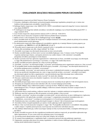 CHALLENGER 2014/2015 REGULAMIN PERUN CIECHANÓW