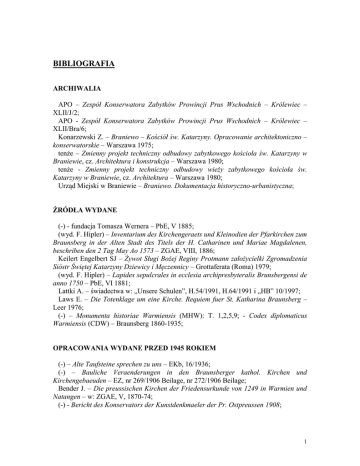 bibliografia - Bazylika św.Katarzyny w Braniewie