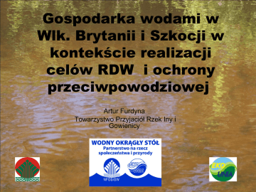 Gospodarka wodami w Wlk. Brytanii i Szkocji w kontekście realizacji celów RDW i ochrony przeciwpowodziowej Artur Furdyna Towarzystwo Przyjaciół Rzek Iny i Gowienicy „RRC Manual of River Restoration Techniques...” 1999 Polskie Wydanie „Przyjazne Naturze….2006 • Ponad 1000 działań renaturyzacyjnych w ciągu ostatnich 30 lat • Wiele z nich jako istotna część zawierało działania poprawiające bezpieczeństwo pwodź przez odtwarzanie naturalnej retencji, wydłużanie koryt cieków, oddawanie rzekom terenów zalewowych Agencja środowiska zespół wykonawczy przy sekretarzu stanu ds. środowiska, żywności i regionu Walii http://www.environment-agency.gov.uk/ -informacje o aktualnych stanach wód -informacje o systemie zarządzania ryzykiem powodziowym- http://www.environmentagency.gov.uk/homeandleisure/floods/default.aspx -- w każdej chwili można po wpisaniu kodu lub nazwy miejscowości poznać ew zagrożenia -sposoby ewakuacji Większość agencji ma charakter ponad departamentowy i stanowi nadrzędną władzę. Pozwala to całościowe zarządzanie problematyką wodną Agencja na rzecz ochrony zasobów naturalnych Szkocji przy departamencie Środowiska Agencja przy ministerstwie rolnictwa i wsi Irlandii Płn. Angielska Agencja ds. ochrony zasobów naturalnych przy min. Środ. Żywn. I Wsi Szkocka Agencja Ochrony Środowiska Agencja Środowiska Irlandii Płn. Over 5 million people in England and Wales live and work in properties that are at risk of flooding from rivers or the sea. • http://www.environmentagency.gov.uk/homeandleisure/floods/def ault.aspx Midlands Catchment Flood Management Plans (CFMPs) 2009 Dla Walii i Anglii 77 CFMP Pierwszy w historii Wlk. Brytanii kompletny plan zarządzania ryzykiem powodziowym dla całych regionów na najbliższe 50 do 100 lat. Nie obejmuje powodzi od morza. Dla obszarów nadmorskich oddzielny plan- Shoreline Management Plans (SMPs). http://publications.environment-agency.gov.uk/pdf/GEMI0909BQYN-e- operational flood storage areas- FSA and biodiversity Final report October 2009 Rząd w 2005 podjął decyzję w ramach realizacji WFD ” Przygotować przestrzeń dla wód” http://www.defra.gov.uk/environ/fcd/policy/strat egy.htm Pitt Recommendation 27 Working Group’s working definition Working with natural processes means taking action to manage flood and coastal erosion risk by protecting, restoring and emulating the natural regulating function of catchments, rivers, floodplains and coasts… Zadaniem Agencji środowiska było zbadanie i wypracowanie metod połączenia zadań wyznaczenia i stworzenia obszarów zalewowych z zadaniami ochrony przyrody, oraz analiza wpływu konkretnych lokalizacji na zadania ochrony siedlisk oraz ekosystemów • zaangażowano Halcrow Group Limited, oraz ekspertów/naukowców (Cranfield University and the Open University) projekt ograniczony został do terytorium Anglii z dwóch źródeł wyjściowych sporządzono listę około 1000 obszarów nadających się na poldery. Ich wielkość wacha się od ułamka ha do 2300 ha. Większość w granicach kilkudziesięciu ha wykorzystano zarówno obszary naturalne, zwykle bez ingerencji w koryto samej rzeki, tworząc przelewy i systemy wolno oddające wody wezbraniowe jak i sztucznie zbudowane, czasem budując zapory, dla wychwycenia i redukcji fali wezbraniowej River Gaunless – obszar zalewowy z użyciem sztucznego piętrzenia, wysokość 12m, długość tamy 350 m, maksymalne przyjęcie wody 11,5 m/s, założony na zalewnia raz na dwa lata. Większość obiektów zaplanowana jest na wodę coroczną. Todmorden FSA bez przetamowania na rzece, wykorzystano obszar rekreacyjny, pojemność 22 500 m³, obwałowanie 270 m, wys 3 m, przelew wyliczony na wodę 10% Ocena środowiskowa efektów FSA nie wypadła korzystnie, szczególnie dla obiektów z przetamowaniem cieków. Zaledwie 5% z nich uzyskało pozytywne referencje. Zdecydowanie lepszym rozwiązaniem jest stosowanie przelewów bez ingerencji w samo koryto cieku. Raport wskazuje na konieczność przeznaczania na takie zadania terenów silnie przekształconych, typu, pastwiska, naturalne tereny zalewowe, parki, bez cennych składników przyrodniczych. W przypadku Anglii ponad 700 wyznaczonych obszarów ma niską wartość ekologiczną. Raport wskazuje na wyznaczanie przede wszystkim naturalnych zalewisk, odciętych wcześniej obwałowaniami, jako najmniej szkodliwe ekologicznie. Wypracowano cały zestaw różnego typu przepustów i upustów pozwalających na sprawne użycie obiektów FSA Projekt White Cart Water- Szkocja Władze Galsgow od dłuższego czasu nosiły się z zamiarem podniesienia obwałowań nad Clyde, dla przepuszczenia regularnie nawiedzających ten region wysokich i gwałtownych wezbrań. W ubiegłym stuleciu miało to miejsce 20 razy, w tym kilkakrotnie wody zalewały część miasta i regionu. W efekcie analizy zrezygnowano z tego pomysłu, jako mało skutecznego oraz kosztownego, na rzecz poprawy retencji zlewni powyżej miasta . początek- analiza stanu dopływu White Cart Water- głównego dopływu Clyde, który potrafi w ciągu 12 godzin wezbrać 6 metrów- 1984, 1994 and 1999. Postanowiono w maksymalnym stopniu zredukować wezbrania przy wykorzystaniu naturalnych warunków retencji wód opadowych Wytypowano 3 duże obszary zalewowe : Blackhouse near Newton Mearns, Kirkland Bridge near Eaglesham, and Kittoch Bridge near Carmunnock. Największy koło Kirkland Bridge ma założoną pojemność 1 mln m³ przy powierzchni 42 ha. Założenia projektowe na wodę 0,5% Obok działań głównych ruszyła kampania odtwarzania torfowisk i obszarów podmokłych w dorzeczu oraz redukcji obszarów z drenażami. Sleach Bog 149 ha, Parkin's Moss and Methven Moss 84 ha. Części dolin rzecznych objęto programami odtwarzania zalesień np. Ettrick Flood Plain. Szkoci, podobnie, jak inni mieszkańcy Wysp Brytyjskich dbają bardzo o zrównoważone kierunki rozwoju oraz zachowanie lub odtworzenie natur