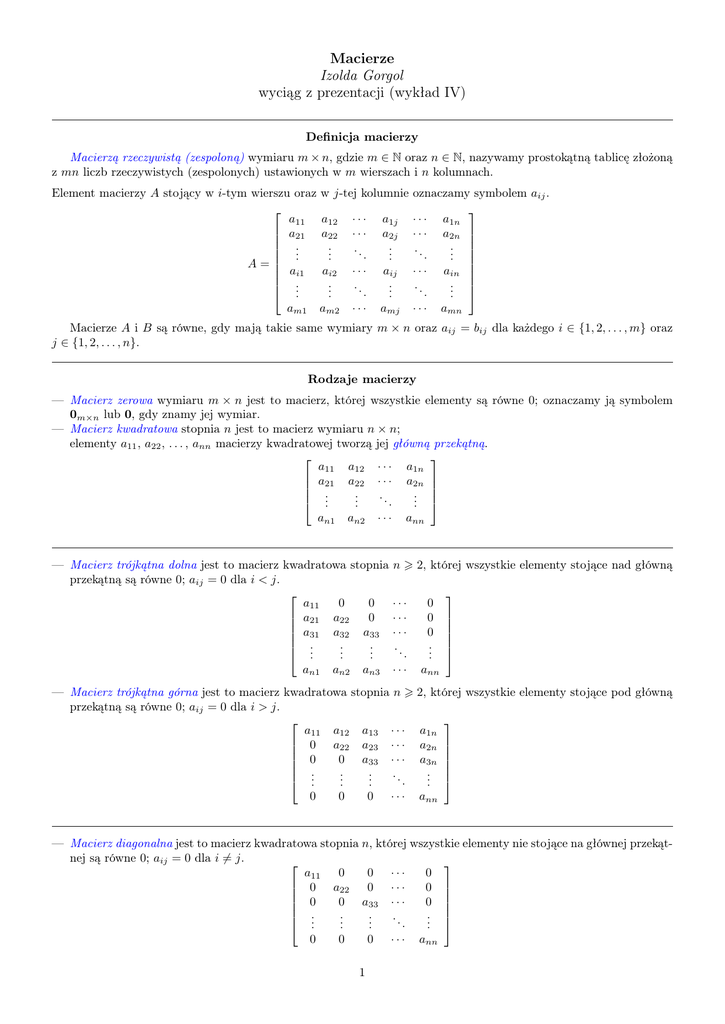 Macierze Izolda Gorgol wyciąg z prezentacji (wykład IV)