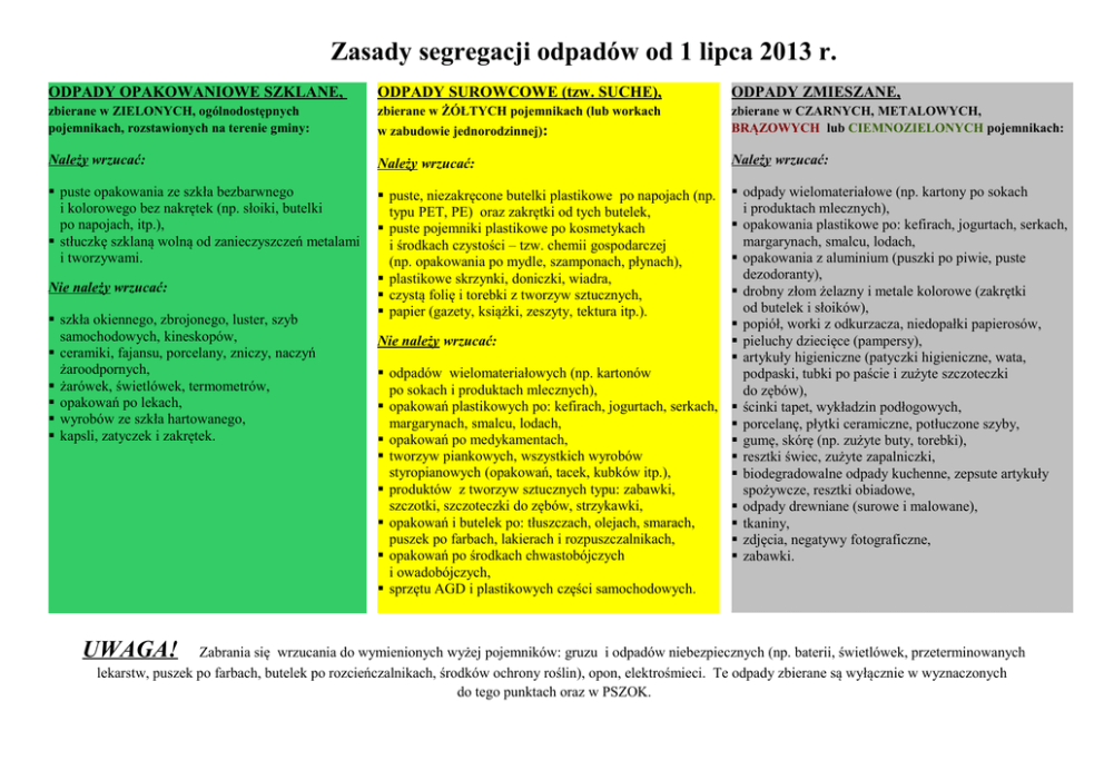 Zasady segregacji odpadów od 1 lipca 2013 r.