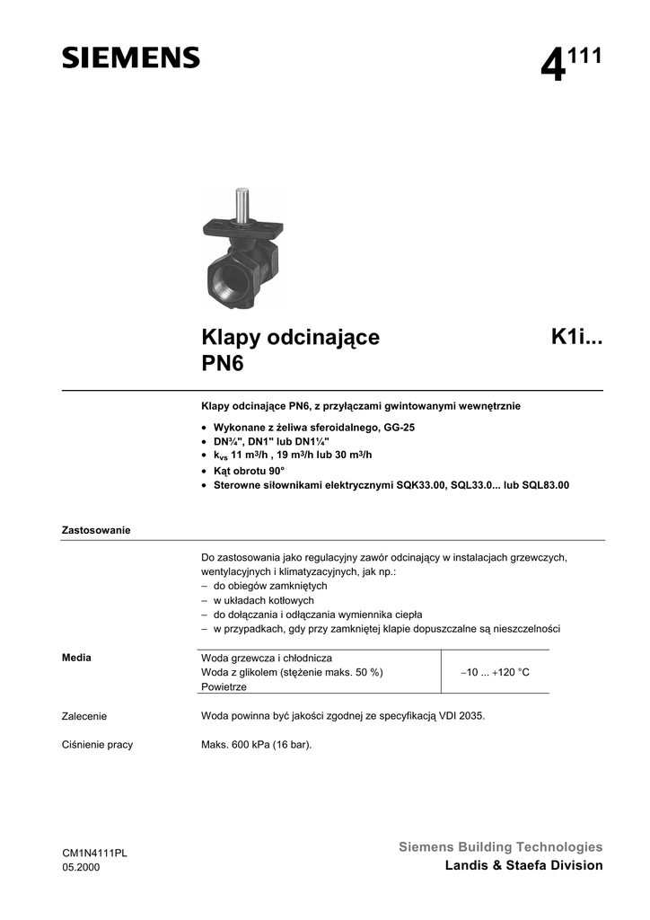 4111 Klapy odcinające PN6 K1i