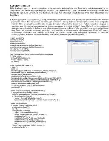 usługowej Collections w metodzie actionPerformed. Przykład zastosowania klasy Collections podano w projekcie