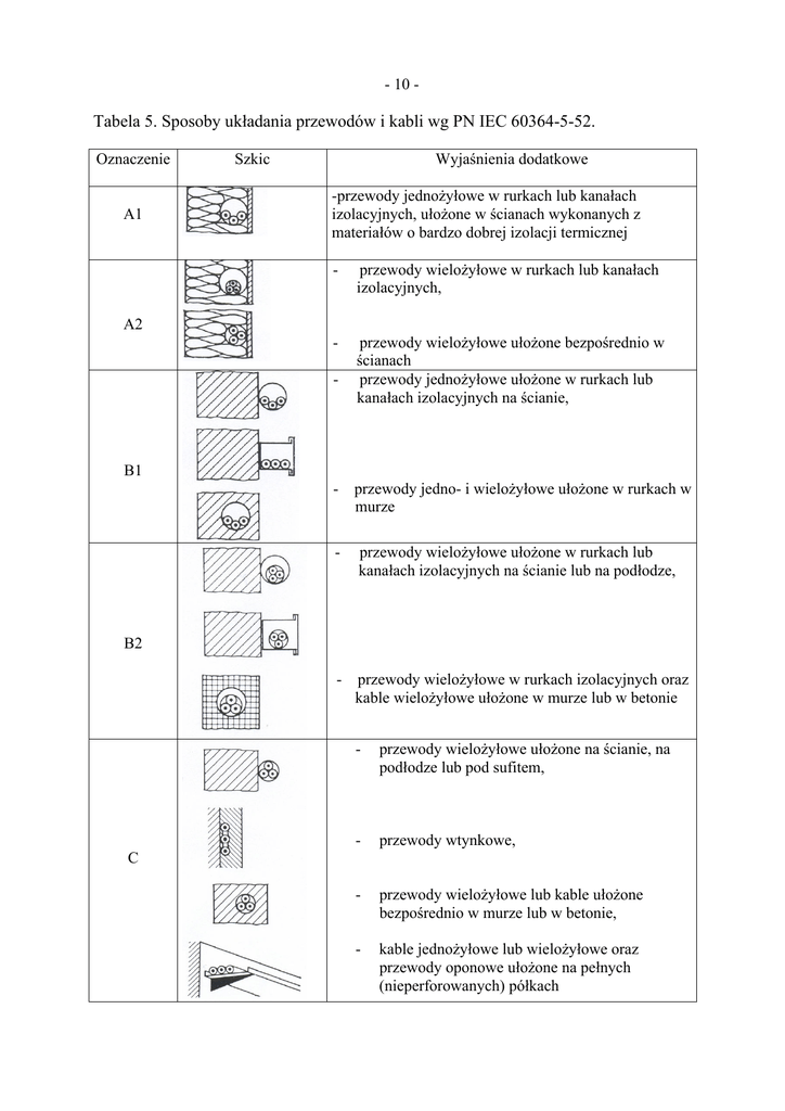 Tabela 5. Sposoby układania przewodów i kabli wg PN IEC 60364