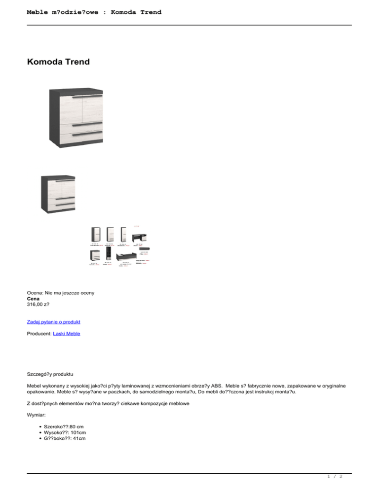 Meble młodzieżowe : Komoda Trend