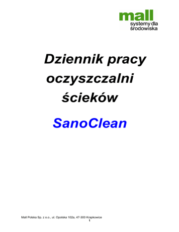 Dziennik pracy oczyszczalni ścieków SanoClean Mall Polska Sp. z o.o., ul. Opolska 102a, 47-300 Krapkowice 1 Dziennik pracy instalacji SanoClean Tydzień od _____ do _____ 20___ Codzienna kontrola sterowania (zaznaczyć krzyŜykiem) Pn Wt Śr Cz Pi So Ni kontrola techniczna Kontrola cotygodniowa (proszę wpisać godziny bądź zaznaczyć krzyŜykiem) licznik roboczogodzin dyfuzora: licznik roboczogodzin napełniania: kontrola wizualna napowietrzania: licznik roboczogodzin odprowadzenia czystej ___________ godzin ___________ godzin wody: licznik roboczogodzin ___________ godzin odprowadzenia ___________ godzin nadmiernego osadu: równomierny obraz pęcherzykowy nierównomierny obraz pęcherzykowy / duŜe pęcherzyki Kontrola comiesięczna (w co czwartym sprawozdaniu tygodniowym) brak płatków szlamu w odpływie kontrola występują płatki szlamu w odpływie oddestylowania szlamu w odpływie brak koŜucha ściekowego w reaktorze SBR kontrola koŜucha występuje koŜuch ściekowy w reaktorze SBR ściekowego Uwagi: _____________________________________________________________ _____________________ ________________________________ (Miejscowość, data) Mall Polska Sp. z o.o., ul. Opolska 102a, 47-300 Krapkowice 2 (podpis uŜytkownika) Dziennik pracy instalacji SanoClean Tydzień od _____ do _____ 20___ Codzienna kontrola sterowania (zaznaczyć krzyŜykiem) Pn Wt Śr Cz Pi So Ni kontrola techniczna Kontrola cotygodniowa (proszę wpisać godziny bądź zaznaczyć krzyŜykiem) licznik roboczogodzin dyfuzora: licznik roboczogodzin napełniania: kontrola wizualna napowietrzania: licznik roboczogodzin odprowadzenia czystej ___________ godzin ___________ godzin wody: licznik roboczogodzin ___________ godzin odprowadzenia ___________ godzin nadmiernego osadu: równomierny obraz pęcherzykowy nierównomierny obraz pęcherzykowy / duŜe pęcherzyki Kontrola comiesięczna (w co czwartym sprawozdaniu tygodniowym) brak płatków szlamu w odpływie kontrola występują płatki szlamu w odpływie oddestylowania szlamu w odpływie brak koŜucha ściekowego w reaktorze SBR kontrola koŜucha występuje koŜuch ściekowy w reaktorze SBR ściekowego Uwagi: _____________________________________________________________ _____________________ ________________________________ (Miejscowość, data) Mall Polska Sp. z o.o., ul. Opolska 102a, 47-300 Krapkowice 3 (podpis uŜytkownika) Dziennik pracy instalacji SanoClean Tydzień od _____ do _____ 20___ Codzienna kontrola sterowania (zaznaczyć krzyŜykiem) Pn Wt Śr Cz Pi So Ni kontrola techniczna Kontrola cotygodniowa (proszę wpisać godziny bądź zaznaczyć krzyŜykiem) licznik roboczogodzin dyfuzora: licznik roboczogodzin napełniania: kontrola wizualna napowietrzania: licznik roboczogodzin odprowadzenia czystej ___________ godzin ___________ godzin wody: licznik roboczogodzin ___________ godzin odprowadzenia ___________ godzin nadmiernego osadu: równomierny obraz pęcherzykowy nierównomierny obraz pęcherzykowy / duŜe pęcherzyki Kontrola comiesięczna (w co czwartym sprawozdaniu tygodniowym) brak płatków szlamu w odpływie kontrola występują płatki szlamu w odpływie oddestylowania szlamu w odpływie brak koŜucha ściekowego w reaktorze SBR kontrola koŜucha występuje koŜuch ściekowy w reaktorze SBR ściekowego Uwagi: _____________________________________________________________ _____________________ ________________________________ (Miejscowość, data) Mall Polska Sp. z o.o., ul. Opolska 102a, 47-300 Krapkowice 4 (podpis uŜytkownika) Dziennik pracy instalacji SanoClean Tydzień od _____ do _____ 20___ Codzienna kontrola sterowania (zaznaczyć krzyŜykiem) Pn Wt Śr Cz Pi So Ni kontrola techniczna Kontrola cotygodniowa (proszę wpisać godziny bądź zaznaczyć krzyŜykiem) licznik roboczogodzin dyfuzora: licznik roboczogodzin napełniania: kontrola wizualna napowietrzania: licznik roboczogodzin odprowadzenia czystej ___________ godzin ___________ godzin wody: licznik roboczogodzin ___________ godzin odprowadzenia ___________ godzin nadmiernego osadu: równomierny obraz pęcherzykowy nierównomierny obraz pęcherzykowy / duŜe pęcherzyki Kontrola comiesięczna (w co czwartym sprawozdaniu tygodniowym) brak płatków szlamu w odpływie kontrola występują płatki szlamu w odpływie oddestylowania szlamu w odpływie brak koŜucha ściekowego w reaktorze SBR kontrola koŜucha występuje koŜuch ściekowy w reaktorze SBR ściekowego Uwagi: _____________________________________________________________ _____________________ ________________________________ (Miejscowość, data) Mall Polska Sp. z o.o., ul. Opolska 102a, 47-300 Krapkowice 5 (podpis uŜytkownika) Dziennik pracy instalacji SanoClean Tydzień od _____ do _____ 20___ Codzienna kontrola sterowania (zaznaczyć krzyŜykiem) Pn Wt Śr Cz Pi So Ni kontrola techniczna Kontrola cotygodniowa (proszę wpisać godziny bądź zaznaczyć krzyŜykiem) licznik roboczogodzin dyfuzora: licznik roboczogodzin napełniania: kontrola wizualna napowietrzania: licznik roboczogodzin odprowadzenia czystej ___________ godzin ___________ godzin wody: licznik roboczogodzin ___________ godzin odprowadzenia ___________ godzin nadmiernego osadu: równomierny obraz pęcherzykowy nierównomierny obraz pęcherzykowy / duŜe pęcherzyki Kontrola comiesięczna (w co czwartym sprawozdaniu tygodniowym) brak płatków szlamu w odpływie kontrola występują płatki szlamu w odpływie oddestylowania szlamu w odpływie brak koŜucha ściekowego w reaktorze SBR kontrola koŜucha występuje koŜuch ściekowy w reaktorze SBR ściekowego Uwagi: _____________________________________________________________ _____________________ ________________________________ (Miejscowość, data) Mall Polska Sp. z o.o., ul. Opolska 102a, 47-300 Krapkowice 6 (podpis uŜytkownika) Dziennik pracy instalacji SanoClean Tydzień od _____ do _____ 20___ Codzienna kontrola sterowania (zaznaczyć krzyŜykiem) Pn Wt Śr Cz Pi So Ni kontrola techniczna Kontrola 