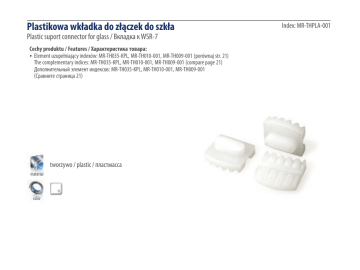 Plastikowa wkładka do złączek do szkła Plastic suport connector for glass / Вкладка к WSR-7 Cechy produktu / Features / Характеристика товара: Element uzupełniający indexów: MR-TH035-KPL, MR-TH010-001, MR-TH009-001 (porównaj str. 21) The complementary indices: MR-TH035-KPL, MR-TH010-001, MR-TH009-001 (compare page 21) Дополнительный элемент индексов: MR-TH035-KPL, MR-TH010-001, MR-TH009-001 (Сравните страница 21) tworzywo / plastic / пластмасса material color Index: MR-THPLA-001