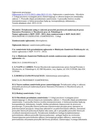 Ogłoszenie powiązane - bip.powiatmyszkowski.pl