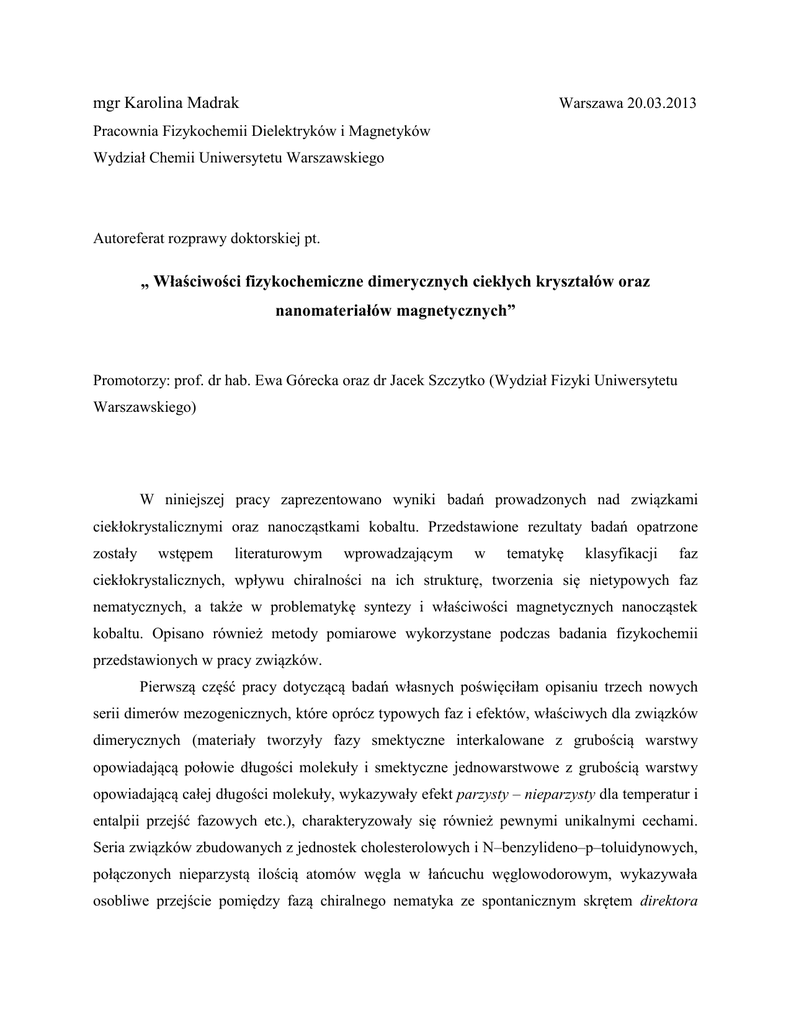 Autoreferat - Wydział Chemii UW