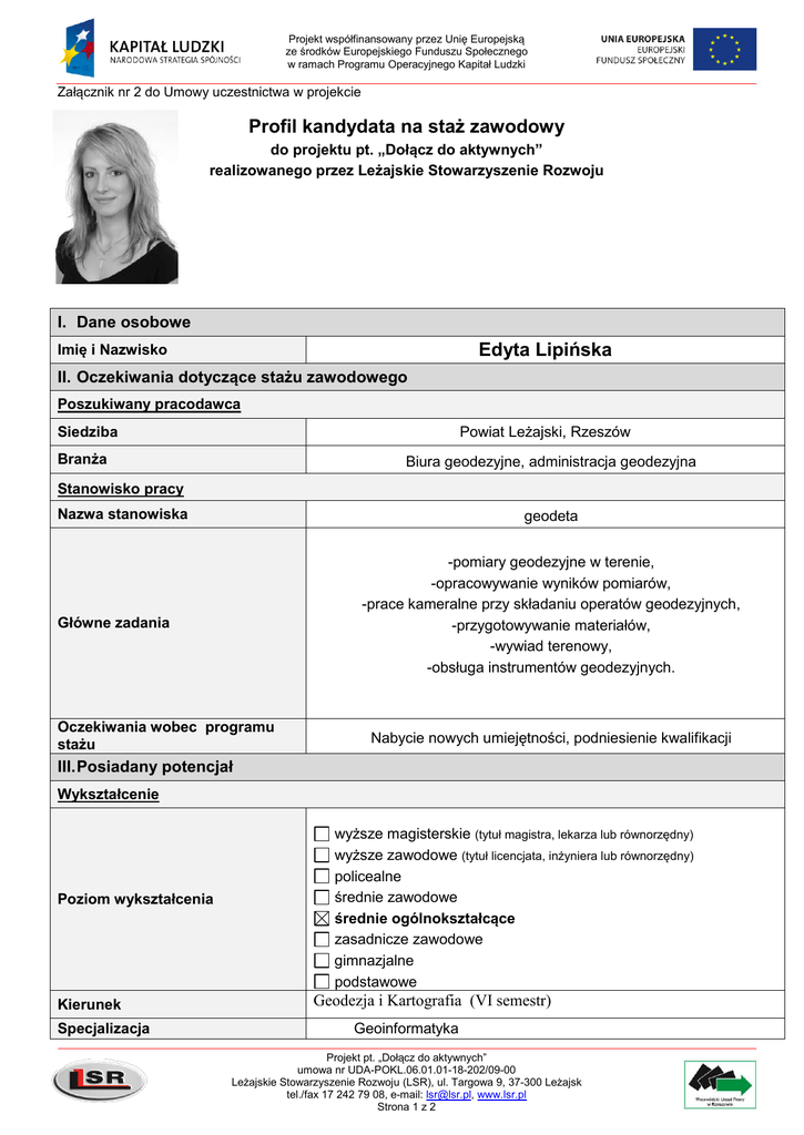 Profil kandydata na staż zawodowy Edyta Lipińska