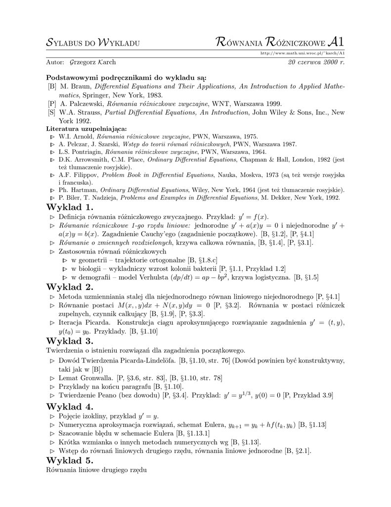 [P] A. Palczewski, Równania różniczkowe zwyczajne, WNT, Warszawa 1999.