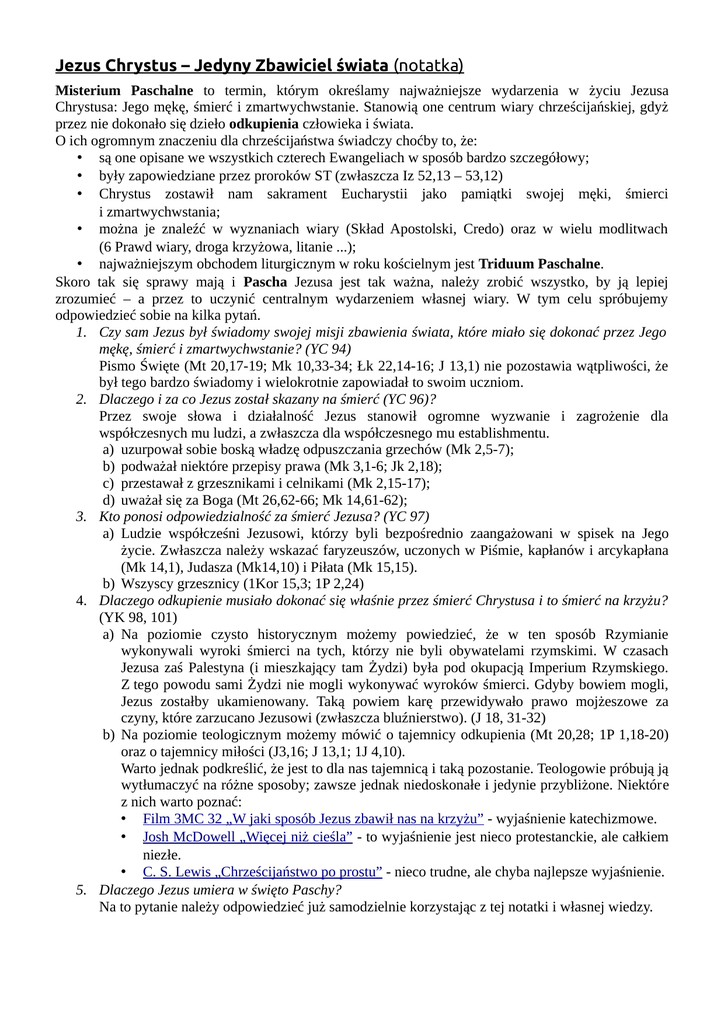 Jezus Chrystus – Jedyny Zbawiciel świata (notatka)