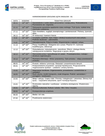 HARMONOGRAM SZKOLENIA JĘZYK ANGILESKI