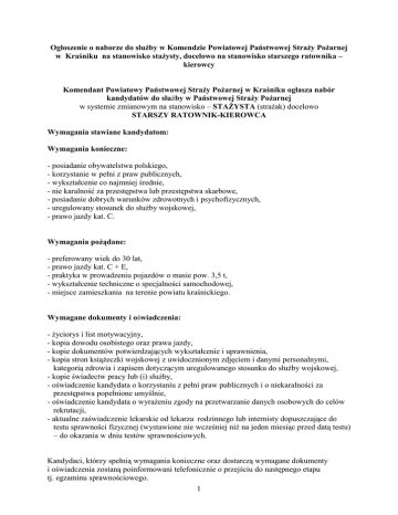 1 Ogłoszenie o naborze do słuŜby w Komendzie