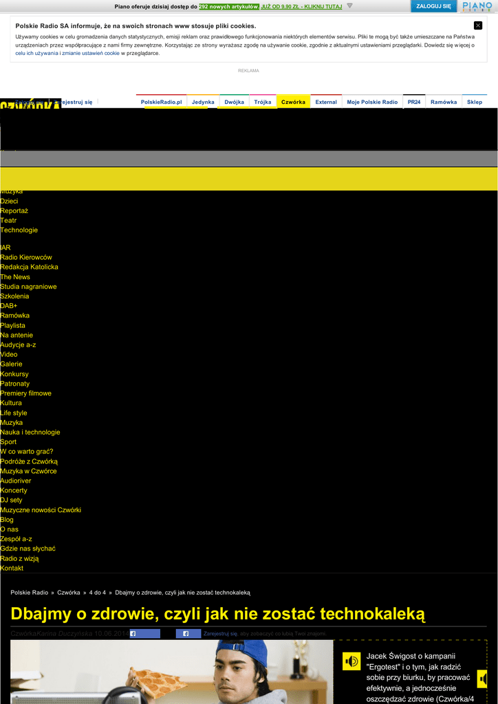 ZALOGUJ SIĘ Piano oferuje dzisiaj dostęp do 292 nowych artykułów. JUŻ OD 9,90 ZŁ - KLIKNIJ TUTAJ Polskie Radio SA informuje, że na swoich stronach www stosuje pliki cookies. Używamy cookies w celu gromadzenia danych statystycznych, emisji reklam oraz prawidłowego funkcjonowania niektórych elementów serwisu. Pliki te mogą być także umieszczane na Państwa urządzeniach przez współpracujące z nami firmy zewnętrzne. Korzystając ze strony wyrażasz zgodę na używanie cookie, zgodnie z aktualnymi ustawieniami przeglądarki. Dowiedz się w ięcej o celu ich używania i zmianie ustawień cookie w przeglądarce. REKLAMA Zaloguj się Zarejestruj się PolskieRadio.pl Jedynka SŁUCHAJ Dwójka Trójka Czwórka External Moje Polskie Radio PR24 Ramówka Szukaj w serwisie Sklep OGLĄDAJ Czwórka Wiadomości Gospodarka Sport Nauka Historia Kultura Muzyka Dzieci Reportaż Teatr Technologie IAR Radio Kierowców Redakcja Katolicka The News Studia nagraniowe Szkolenia DAB+ Ramówka Playlista Na antenie Audycje a-z Video Galerie Konkursy Patronaty Premiery filmowe Kultura Life style Muzyka Nauka i technologie Sport W co warto grać? Podróże z Czwórką Muzyka w Czwórce Audioriver Koncerty DJ sety Muzyczne nowości Czwórki Blog O nas Zespół a-z Gdzie nas słychać Radio z wizją Kontakt Polskie Radio » Czwórka » 4 do 4 » Dbajmy o zdrowie, czyli jak nie zostać technokaleką Dbajmy o zdrowie, czyli jak nie zostać technokaleką CzwórkaKarina Duczyńska 10.06.2014 Zarejestruj się, aby zobaczyć co lubią Twoi znajomi. Udostępnij Lubię to! Jacek Świgost o kampanii "Ergotest" i o tym, jak radzić sobie przy biurku, by pracować efektywnie, a jednocześnie oszczędzać zdrowie (Czwórka/4 do 4) na siedząco, stojąco i leżąco, czyli jak ucząc się, polscy studenci niszą swoje kręgosłupy - materiał Martyny Ogonek (Czwórka/4 do 4) Gracz przed komputerem, foto: Glow Images/East News Ile godzin dziennie spędzamy przed komputerem, albo telewizorem? Ile godzin każdego dnia korzystamy ze smartfonów? Zbyt wiele. Młodzież coraz częściej zapada na choroby, wynikające z nieprawidłowego użytkowania sprzętu elektronicznego. Okazuje się, że zaledwie 1 na 20 studenckich stanowisk pracy jest ergonomicznych, a z różnych badań na terenie całej Europy wynika, że problemy z kręgosłupem ma średnio 8 na 10 osób. I choć polscy studenci wiedzą, co zrobić, by nauka nie miała na ich kości i stawy szkodliwego wpływu, nie zawsze teoria idzie w parze z praktyką. - W trakcie sesji spędzam w bibliotekach wiele czasu. Wiem, że trzeba siedzieć prosto, plecami dotykać oparcia krzesła - tłumaczy jedna ze studentek Uniwersytetu Warszawskiego. - Staram się robić to poprawnie, ale bywa różnie. Studenci wymyślają najróżniejsze pozycje, by uczyć się jak najbardziej efektywnie i… efektownie. Niektórzy kładą się nawet po prostu na brzuchu, na podłodze - przyznaje Agnieszka Kościeniak-Osiak, specjalista do spraw promocji z Biblioteki Uniwersytetu Warszawskiego. - Ostatnio jedna z dziewcząt czytała książki, leżąc na plecach i opierając nogi pod kątem 90 stopni o krzesło. Wraz z koleżankami stwierdziła, że w ten sposób doprowadzi do mózgu odpowiednią ilość krwi. Z powodu nieprawidłowej postawy podczas nauki, jak przyznaje Patrycja Krawczyk-Szulc, specjalista medycyny pracy, do lekarza z bólem pleców lub stawów, zgłaszają się osoby coraz młodsze, nierzadko 20-letnie. - To są często dolegliwości, które wskazują już na zmiany przeciążeniowe - mówi ekspertka i wymienia: bóle głowy, suchość pod powiekami, a po wielu godzinach pracy nawet pogorszenie jakości wzroku. Czytaj także: Jak przygotować swoje stanowisko pracy? <<< Dlatego rusza kampania "Ergotest", która ma na celu zweryfikowanie, w jakich warunkach młodzi Polacy pracują i uczą się. - Ludzie zazwyczaj stawiają po prostu laptopy na biurkach i zaczynają pracę, nikt nie myśli o tym, że góra monitora powinna znajdować się na wysokości wzroku, a podczas pracy dłuższej niż godzinę powinniśmy korzystać z zewnętrznych klawiatur - mówi w "4 do 4" Jacek Świgost organizator akcji. - To tyczy się wszystkich monitorów, tych w smart fonach też. Nikt o tym nie myśli, a warto zacząć zwracać na to uwagę. (kd/tj) Tagi: Czwórka , medycyna , studenci , technologie , technologie mobilne , zdrowie REKLAMA Czytaj także: Jak zarabiać na filmach w serwisie Youtube? Vlogerzy i youtuberzy to ludzie, którzy z pasji, bądź dla pieniędzy kręcą filmy i wrzucają je do sieci. Okazuje się, że może to być całkiem intratny biznes. Jak zarobić na Youtube? Koniec kultowych telefonów. Jaka przyszłość czeka Nokię? Firma Nokia powstała w 1865 roku. Wówczas fabryka ta produkowała masę papierniczą, następnie kable i galanterię gumową. Dopiero po przeprowadzce do fińskiego miasteczka o nazwie Nokia narodziła się korporacja, którą znamy dziś. Tam bowiem zaczęto produkować szeroko pojętą elektronikę. Przejęcia firm - tak działa rynek nowych technologii "Zasada kuli śniegowej" to nowy trend na technologicznym rynku. - Jeszcze rok temu na topie było kupowanie patentów i wykorzystywanie ich przeciwko innym firmom - mówi Marcin Kubicki, redaktor naczelny magazynu "T3". Deklaracja wiary lekarzy. Leczyć czy wierzyć? Ok. 3000 lekarzy zdecydowało się podpisać na Jasnej Górze "Deklarację wiary", zgodnie z którą nie będą oni wykonywać niektórych zabiegów i innych aktywności medycznych, sprzecznych z ich sumieniem, m.in. aborcji, in vitro czy przepisywanie środków antykoncepcyjnych. Polecane Kosmiczne podróże w Czwórce Co stanie się, gdy ludzie zrozumieją, że nie są sami we wszechświecie? O tym w nowym słuchowisku multimedialnym Czwórki - radiowej adaptacji powieści Terry’ego Pratchetta i Stephena Baxtera "Długa Ziemia". Tagi: Czwórka, słuchowisko Serwis w wersji na telefon: Na skróty: Informacje Wiadomości Sport Gosp