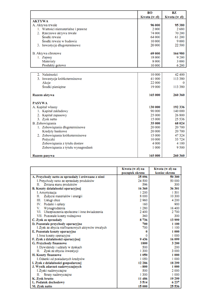 1. Przedmiotem analizy finansowej są: a. koszty własne, b. gospodarka materiałowa, c. przychody jednostki gospodarczej, d. sytuacja majątkowo-finansowa. 2. Analiza struktury: b. ma na celu ustalenie kierunku zmian w czasie, poszczególnych zjawisk finansowych, c. umożliwia kontrolę stanu i pozycji finansowej jednostki gospodarczej, d. ma na celu ustalenie tempa zmian w czasie, poszczególnych zjawisk finansowych. 3. Wskaźniki płynności finansowej: a. przedstawiają efektywność finansową działalności gospodarczej, b. dają obraz szybkości krążenia zasobów majątkowych, c. dają obraz sytuacji majątkowej jednostki gospodarczej, d. charakteryzują stopień wypłacalności przedsiębiorstwa w krótkim okresie. 4. Analiza statyczna bilansu: a. dotyczy badania struktury majątku przedsiębiorstwa i źródeł jego finansowania, b. pozwala ocenić kierunki zmian zachodzących w majątku i źródłach jego finansowania, c. wyjaśnia źródła finansowania majątku, d. wyjaśnia, skąd pochodzą koszty w jednostce gospodarczej. 5. Podstawowy wskaźnik struktury aktywów przedstawia relację: a. aktywów trwałych do aktywów ogółem, b. aktywów obrotowych do aktywów ogółem, c. aktywów trwałych do aktywów obrotowych, d. aktywów obrotowych do aktywów trwałych. 6. Poziom zadłużenia jednostki gospodarczej mierzy relacja: a. kapitałów własnych do kapitałów obcych, b. kapitałów obcych do kapitałów własnych, c. kapitałów obcych do kapitałów całkowitych, d. kapitałów całkowitych do kapitałów obcych. 7. Rosnące zadłużenie a. podnosi ryzyko przedsięwzięcia b. powoduje podniesienie wiarygodności kredytowej podmiotu c. podnosi koszty obsługi kolejnych kredytów d. zawsze pozwala korzystać z efektu dźwigni finansowej 8. Wskaźnik bieżącej płynności wyraża stosunek: a. aktywów obrotowych do zobowiązań krótkoterminowych, b. środków pieniężnych do zobowiązań krótkoterminowych, c. zapasów do zobowiązań krótkoterminowych, d. należności do zobowiązań krótkoterminowych. 9. Wskaźnik szybkiej płynności finansowej: a. jest miernikiem zdolności przedsiębiorstwa do spłacenia zobowiązań krótkoterminowych przez upłynnienie posiadanych zasobów majątku obrotowego, b. wyraża możliwości spłaty zobowiązań krótkoterminowych z wykorzystaniem łatwo dostępnych środków finansowych, należących do składników majątku obrotowego, c. wyjaśnia, jaką kwotę zobowiązań może pokryć przedsiębiorstwo z bezpośrednio dostępnych środków płatniczych, d. jest miernikiem zdolności przedsiębiorstwa do spłacenia zobowiązań krótkoterminowych krótkoterminowych przez upłynnienie posiadanych zasobów majątku trwałego. 10. Rentowność sprzedaży brutto mierzy relację: a. wyniku netto do sprzedaży netto, b. wyniku brutto do sprzedaży brutto, c. wyniku netto do sprzedaży brutto, d. wyniku brutto do sprzedaży netto. 11. Rentowność aktywów zależy od: a. rentowności sprzedaży brutto oraz szybkości rotacji aktywów, b. rentowności sprzedaży netto oraz szybkości rotacji aktywów, c. rentowności sprzedaży netto oraz szybkości rotacji zobowiązań krótkoterminowych, d. rentowności sprzedaży brutto oraz szybkości rotacji zobowiązań krótkoterminowych. 12. Rentownością finansową interesują się przede wszystkim: a. kierownictwo jednostki, b. akcjonariusze, c. pracownicy jednostki, d. inwestorzy. 13. Relacja wyniku netto do kapitału własnego określa: a. wskaźnik dynamiki kapitału własnego, b. wskaźnik rotacji kapitału własnego, c. wskaźnik rentowności kapitału własnego, d. wskaźnik dynamiki kapitału własnego. 14. Model Du Ponta służy do: a. analizy rentowności sprzedaży, b. analizy rentowności kapitału stałego, c. analizy rentowności kapitału własnego, d. analizy rentowności aktywów. 15. Kapitał obrotowy netto to: a. różnica między aktywami obrotowymi i zobowiązaniami krótkoterminowymi w ujęciu majątkowym b. wartość aktywów obrotowych c. jedno z narzędzi badania płynności finansowej d. różnica między kapitałem stałym a majątkiem trwałym w ujęciu kapitałowym 1. Co przedstawiają poniższe dwa rysunki? 2. Co przedstawia poniższy rysunek? a. cykl konwersji gotówki b. cykl operacyjny c. cykl środków pieniężnych d. kapitał pracujący Cykl operacyjny to ……………………………………………………………………………………………………………………………… Cykl konwersji gotówki ……………………………………………………………………………………………………………………….. 3. Uzupełnij brakujące części diagramu z pytania 2. 4. Popraw model du Ponta ROS Rentowność sprzedaży ROA