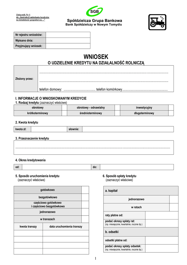 wniosek - Bank Spółdzielczy w Nowym Tomyślu
