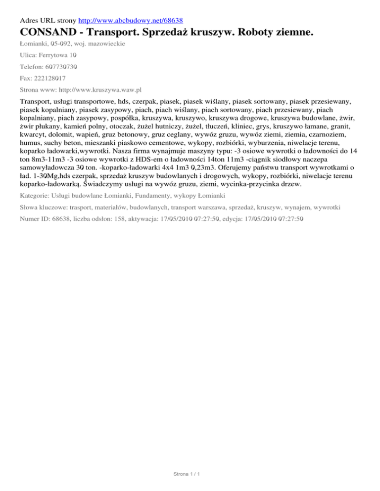 CONSAND - Transport. Sprzedaz kruszyw. Roboty