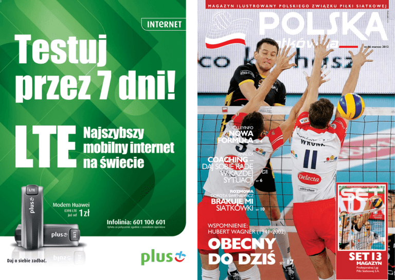 ISSN 1897-8762 nr 46 marzec 2012 VOLLEYINFO NOWA FORMUŁA str 4 ANALIZA COACHING – DAJ SOBIE RADĘ W KAŻDEJ SYTUACJI str 6 ROZMOWA DOROTA ŚWIENIEWICZ BRAKUJE MI SIATKÓWKI str 10 WSPOMNIENIE: HUBERT WAGNER (1941-2002) OBECNY DO DZIŚ str 17 SET13 MAGAZYN Profesjonalnej Ligi Piłki Siatkowej S.A. OCVVGTJQTP 57+OKEJCGNOGKUN 46 MAGAZYN ILUSTROWANY POLSKIEGO ZWIĄZKU PIŁKI SIATKOWEJ nr 46 marzec 2012 SPIS TREŚCI ANALIZA FOTO: BEATA KOZAKOW-KOWALCZYK 8 POLSKA MŁODZIEŻ NAJLEPSZA kurtka terrex feather .GMMKOCVGTKCã)14'6':®2TQ5JGNNUVYQT\QPQYãCĤPKGPCVCMKGQMC\LG 1VQMWTVMCIQVQYCPCEKĂIJMKG\KOQYGYCTWPMKYIxTCEJ/KEJK.GTLGP \FQD[YC/CVVGTJQTPQFUVTQP[ITCPK(WTIIGP Szanowni Państwo! Przed nami kolejny polski turniej finałowy Ligi Mistrzów. Najlepsze klubowe zespoły Europy po raz trzeci w ciągu pięciu lat zagrają w Łodzi. To prawdziwy rekord. W historii najważniejszych europejskich klubowych rozgrywek nie zdarzyło się bowiem, by finał odbywał się w tym samym mieście dwukrotnie. Łódź staje się więc nieoficjalną stolicą Ligi Mistrzów. Tegoroczny finał czterech trafił do Polski w trybie awaryjnym, ale nie jest to absolutnie powód, by czynić z tego faktu zarzut organizatorom. Polska Grupa Energetyczna, sponsor Skry Bełchatów, stanęła na wysokości zadania, przyjmując ofertę Europejskiej Konfederacji Piłki Siatkowej (CEV). To jasny dowód, że Polska gwarantuje organizację międzynarodowych imprez siatkarskich na najwyższym poziomie, i to nawet w trybie nadzwyczajnym. Podziękowania należą się także władzom samorządowym Łodzi. Błyskawiczne decyzje Prezydent Hanny Zdanowskiej pozwoliły na sprawne przeprowadzenie kwestii formalno-prawnych. Polska Grupa Energetyczna i Łódź stanęły naprawdę na wysokości zadania. Teraz pora na siatkarzy PGE Skry Bełchatów. Jako wiceprezydent Europejskiej Konfederacji Piłki Siatkowej czuję osobistą satysfakcję, że Polska postrzegana jest w międzynarodowych strukturach jako partner godny najwyższego zaufania. Z dumą mogę stwierdzić, że poziom organizacyjny imprez siatkarskich rozgrywanych w Polsce jest najwyższy. To znakomicie rokuje na przyszłość. Nasz kraj jest już istotnym partnerem zarówno Międzynarodowej Federacji Piłki Siatkowej (FIVB), jak i Europejskiej Konfederacji Piłki Siatkowej (CEV). Ten ogromny kapitał zaufania nie może być roztrwoniony. Przed Polskim Związkiem Piłki Siatkowej kolejne wyzwania. Mistrzostwa świata w siatkówce plażowej i halowe mistrzostwa Europy mężczyzn w roku przyszłym oraz męskie mistrzostwa świata rok później, mistrzostwa Europy Juniorów w tym roku to imprezy fundamentalne w rozwoju siatkówki tak w skali polskiej, jak i globalnej. Władze CEV i FIVB mają świadomość, że epokowego skoku w rozwoju i promocji siatkówki można dokonać jedynie poprzez Polskę. Na świecie są siatkarskie federacje większe, zasobniejsze i bogatsze w sukcesy, lecz tylko Polska gwarantuje wspaniałe widowiska i nieustający postęp. Dlatego łódzki finał Ligi Mistrzów musi być wydarzeniem, które przejdzie do historii siatkówki w wymiarze międzynarodowym. Potwierdźmy, że organizacyjnie zdystansowaliśmy świat, a atmosfera na naszych trybunach jest niezmiennie znakomita. Szansą na rozwój siatkówki w skali globalnej jest harmonia między wysokim poziomem sportowym a najwyższym poziomem satysfakcji kibica tak w hali, jak i przed ekranem telewizora. PZPS OD KUCHNI 13 WYDZIAŁY, KOMISJE I ICH PRZEWODNICZĄCY Zgodnie z zapowiedzią zaglądamy dzisiaj do kuchni siatkarskiego związku i rozpoczynamy prezentację struktur organów społecznych PZPS, czyli wydziałów i komisji. ANALIZA 14 Internet SIATKÓWKA W SIECI z każdym dniem rozwija się dynamicznie, a tym samym rośnie rola portali internetowych. Mają one wiele zalet dla użytkowników – od dostarczania najświeższych informacji po umożliwianie komentowania artykułów; często konkurują też ze sobą różnymi atrakcjami, np. konkursami czy filmami wideo. PLAŻÓWKA 18 SIATKARSCY „LONDYŃCZYCY 2012” Pod koniec minionego roku, podczas zawodów Pucharu Świata w siatkówce mężczyzn, reprezentacja Polski w imponującym stylu wywalczyła srebrny medal. Drugie miejsce w tych prestiżowych zawodach dało podopiecznym Andrei Anastasiego upragnioną olimpijską nominację. DOOKOŁA SIATKI 22 BEZ SENTYMENTÓW Andrea Anastasi do drużyny, która zagra na igrzyskach w Londynie wybierze najlepszych z najlepszych. Co od tego nie mam wątpliwości. Na razie ogląda fazę play off PlusLigi siatkarzy i szuka kandydatów do tej piekielnie trudnej misji. Przy okazji podkreśla, że nie będzie się kierował sentymentem i bez skrupułów postawi na tych, którzy będą prezentować najwyższą formę. MIROSŁAW PRZEDPEŁSKI Prezes PZPS WYDAWCA: POLSKI ZWIĄZEK PIŁKI SIATKOWEJ ul. Grażyny 13, 02-548 Warszawa Tel. 22 440 83 44 Fax. 22 440 83 43 REDAKTOR NACZELNY – JANUSZ UZNAŃSKI REDAGUJE KOLEGIUM PROJEKT GRAFICZNY: MAREK WAJDA Na zlecenie Polskiego Związku Piłki Siatkowej redaguje Grupa Codex 02-457 Warszawa, ul. Czereśniowa 19A e-mail: [email protected] Redakcja nie zwraca materiałów niezamówionych oraz zastrzega sobie prawo skracania i redagowania nadsyłanych tekstów. Wszelkie prawa zastrzeżone. ISSN 1897-8762 FOTO: W. KOZIEŁ CFKFCUEQOQWVFQQT Rok 2011 był najlepszym rokiem dla polskiej siatkówki plażowej w historii. Nasza kadra plażowa zdobyła w ubiegłym sezonie 16 medali na imprezach najwyższej rangi. VOLLEYINFO AKTUALNOŚCI NOWA FORMUŁA INFORMACJA MEMORIAŁ HUBERTA WAGNERA W ZIELONEJ GÓRZE W LIDZE ŚWIATOWEJ W 2012 WYDARZENIE MOVE ŚWIDERSKI EDITION END FART FOTO: CEV.LU / W.KOZIEŁ / FIVB.ORG / MSE / ARCHIWUM PZPS nr 46 marzec 2012 4 LIGA ŚWIATOWA 2012 BĘDZIE ROZGRYWANA INACZEJ NIŻ DO TEJ PORY – RYWALIZACJA ZESPOŁÓW W GRUPACH ODBĘDZIE SIĘ W TURNIEJACH, W KTÓRYCH GOSPODARZEM BĘDZIE KAŻDA EKIPA Z GRUPY. W FINALE (4-8 LIPCA) SPOTKA SIĘ 6 ZESPOŁÓW: 4 NAJLEPSZE Z KAŻDEJ GRU