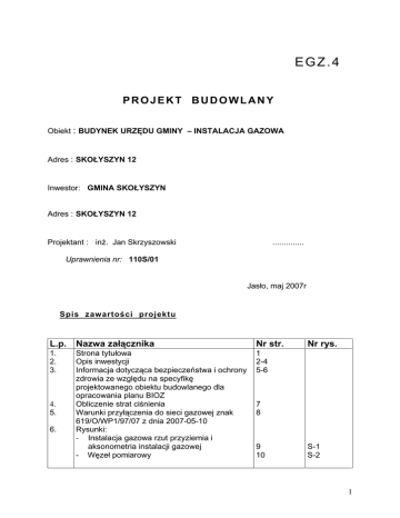 Projekt instalacja gazowa - Urząd Gminy Skołyszyn